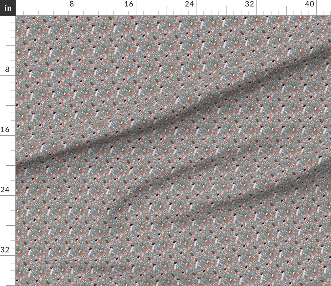 Ditsy Floral Whimsical Swim Beach Lake Summer Feminine Small Scale Blue Red Custom Printed Fabric by Spoonflower Various Fabrics by the Yard or Fat Quarter
