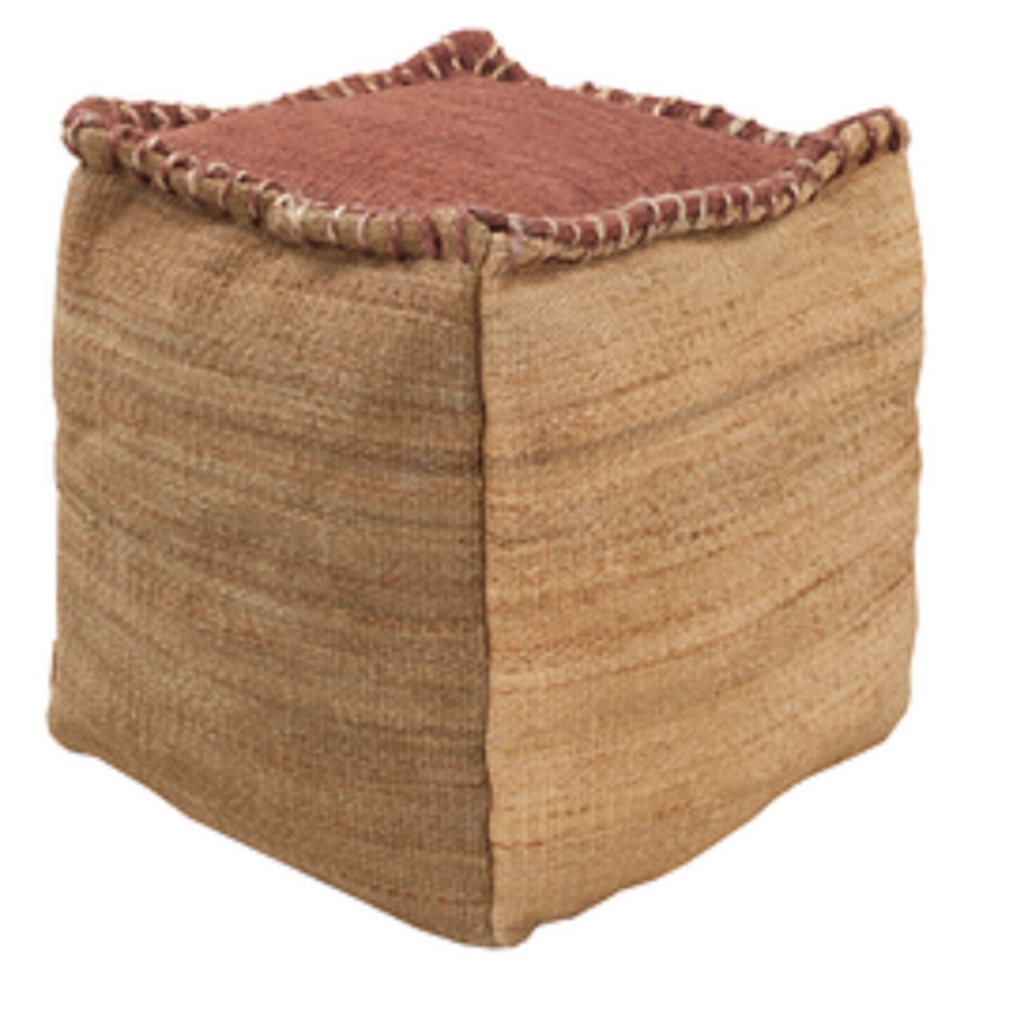Diva At Home 18" Auburn and Tan Stitched Top Jute Square Pouf Ottoman