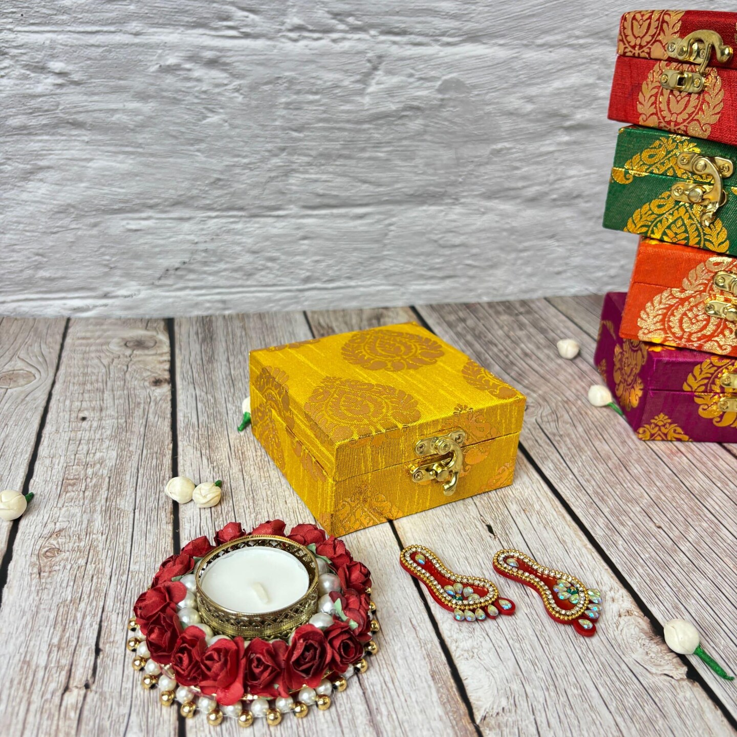 Diwali Gift Hamper Indian Festival Premium Deepawali Return Gift Box with Candle Holder Lakshmi Feet Navratri Thanksgiving Hampers for Employees Friends Relatives - Corporate Gifts