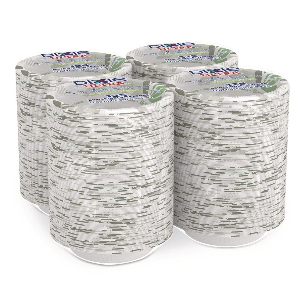 Dixie Pathways 12 oz. Heavyweight WiseSize Paper Bowls with Soak Proof Shield - Green/Burgundy (4/Carton)