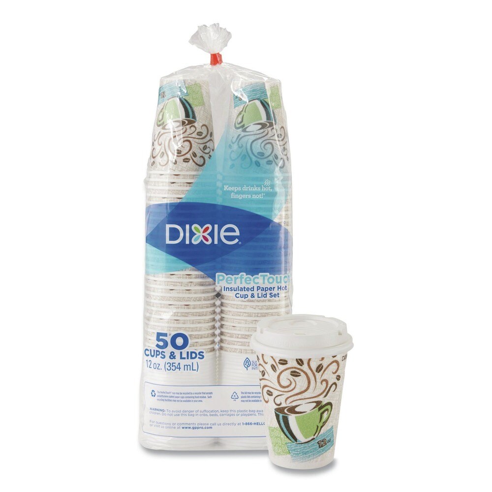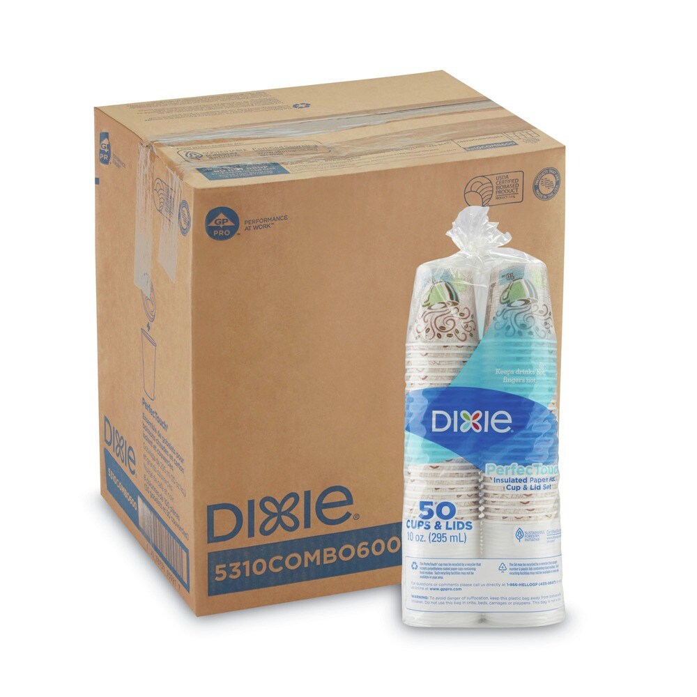 Dixie PerfecTouch 10 oz. Paper Hot Cups and Lids Combo - Multicolor (50/Pack, 6 Packs/Carton)