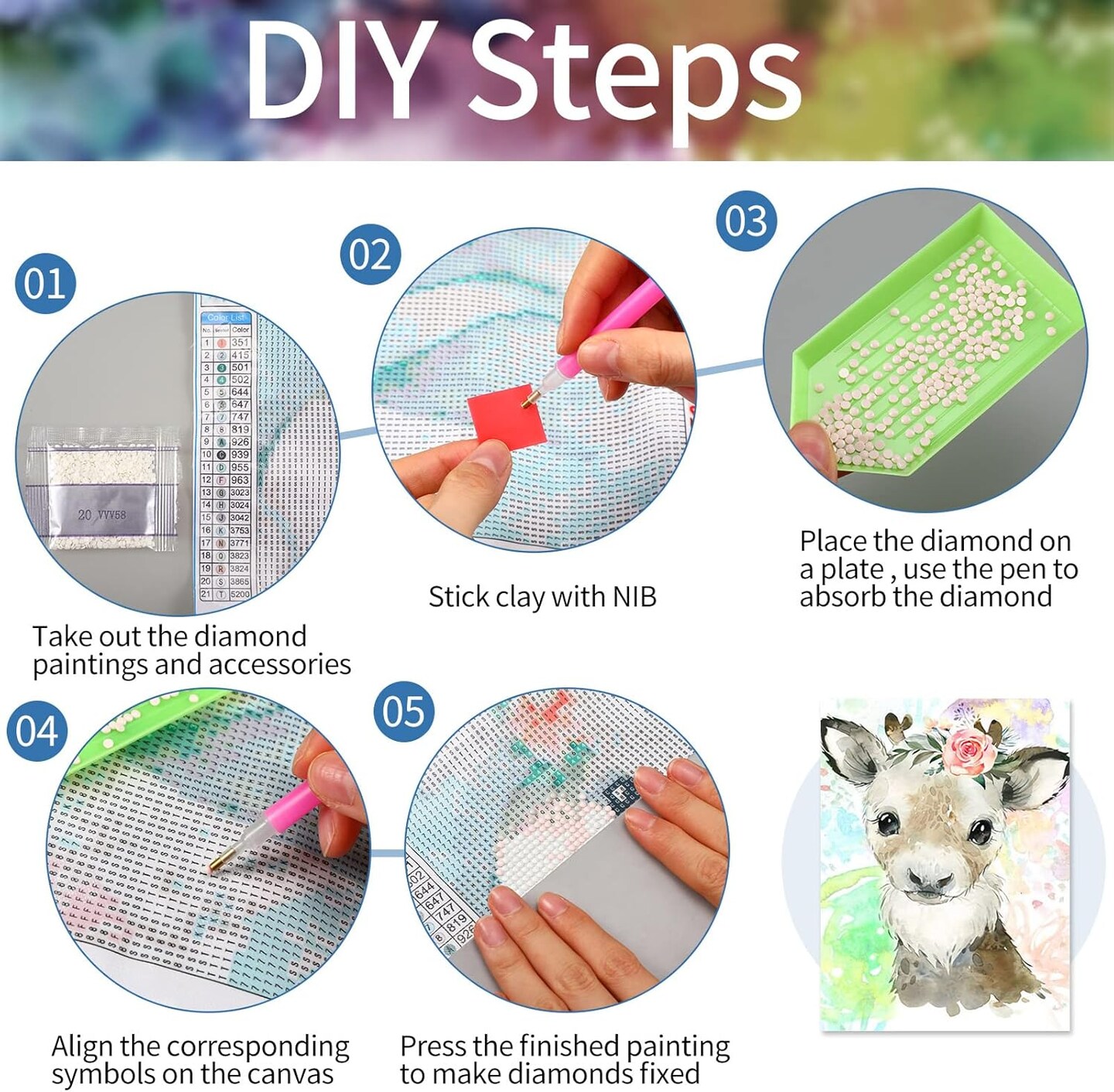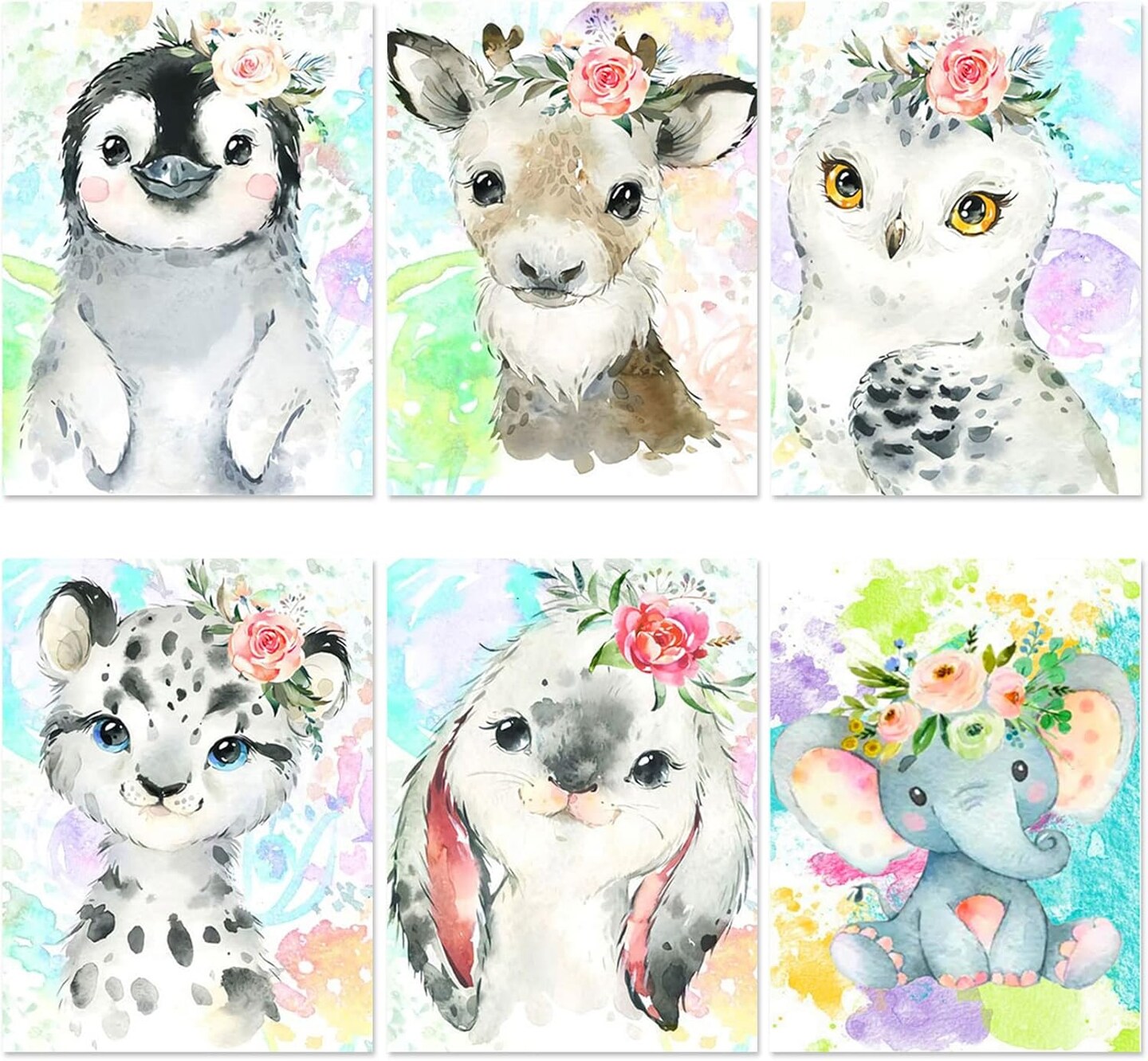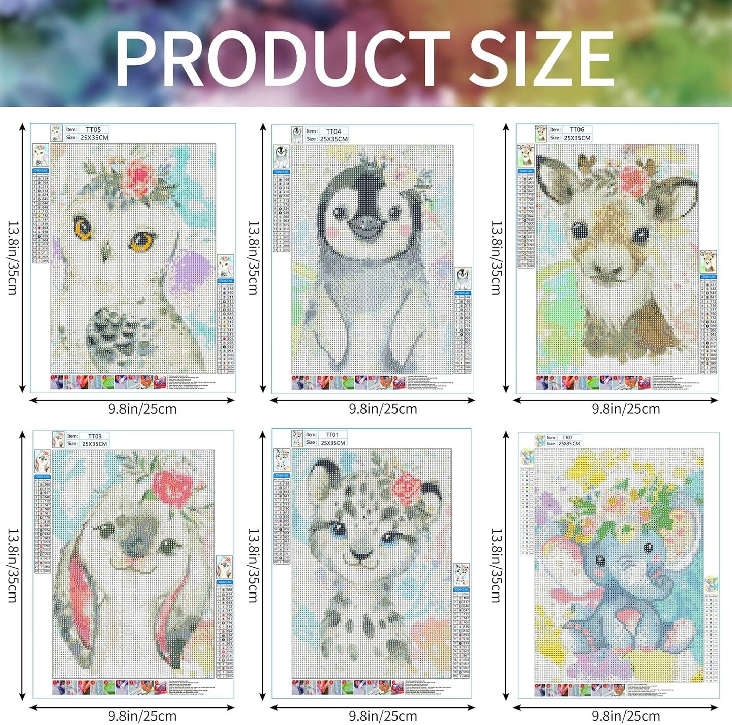 DIY 5D Diamond Painting Kits for Adults 6 Pcs Full Round Drill Diamond Art Painting Kit Cute Animals Diamonds Paint for Beginners Home Wall