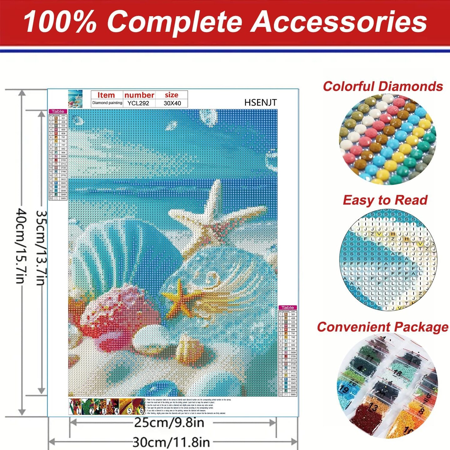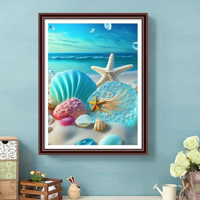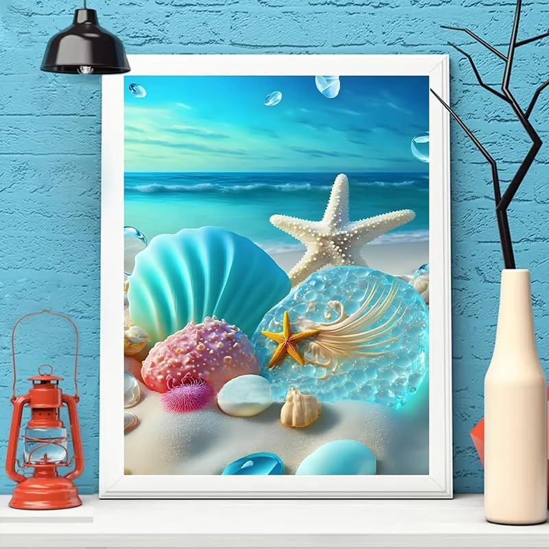 DIY 5D Diamond Painting Kits Sea Shell for Adults Beginners,Beach Diamond Art Full Round Diamond Drill,Starfish Paintings by Diamonds Home Wall Decor Gift(30x40cm/11.8X15.7inch)