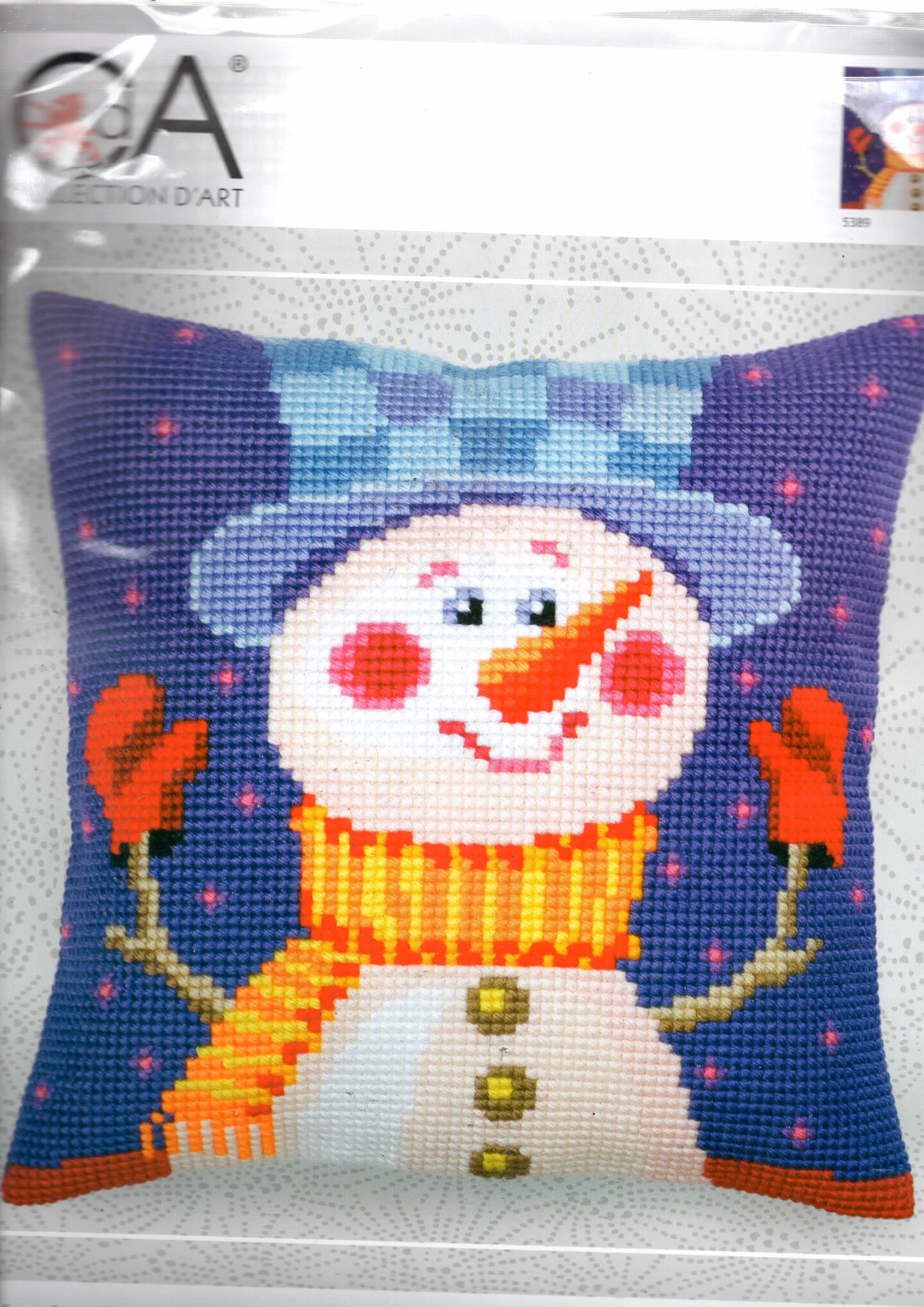 DIY Collection D'Art Cheerful Snowman Needlepoint 16" Pillow Top Kit