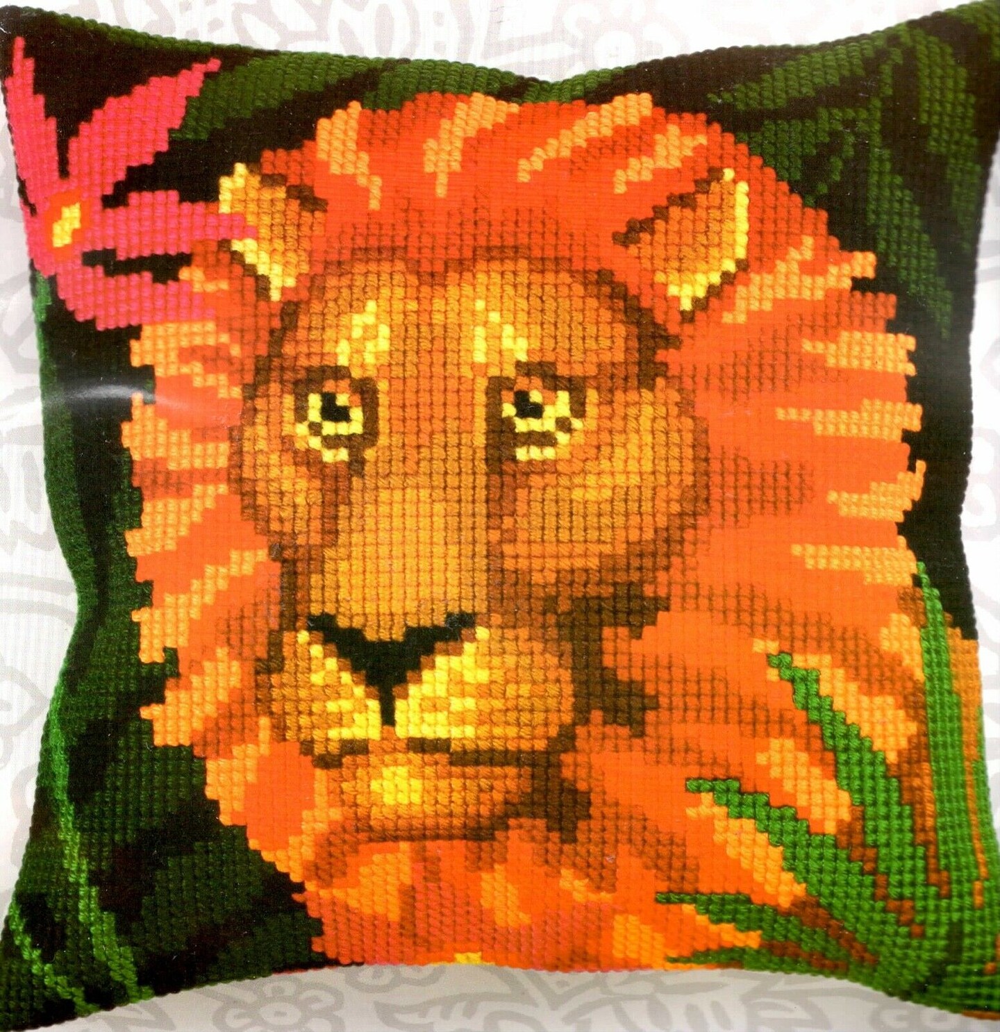 DIY Collection D'Art Lion Night Jungle Needlepoint 16" Pillow Top Kit