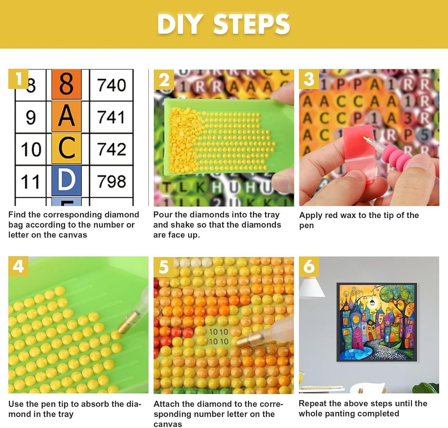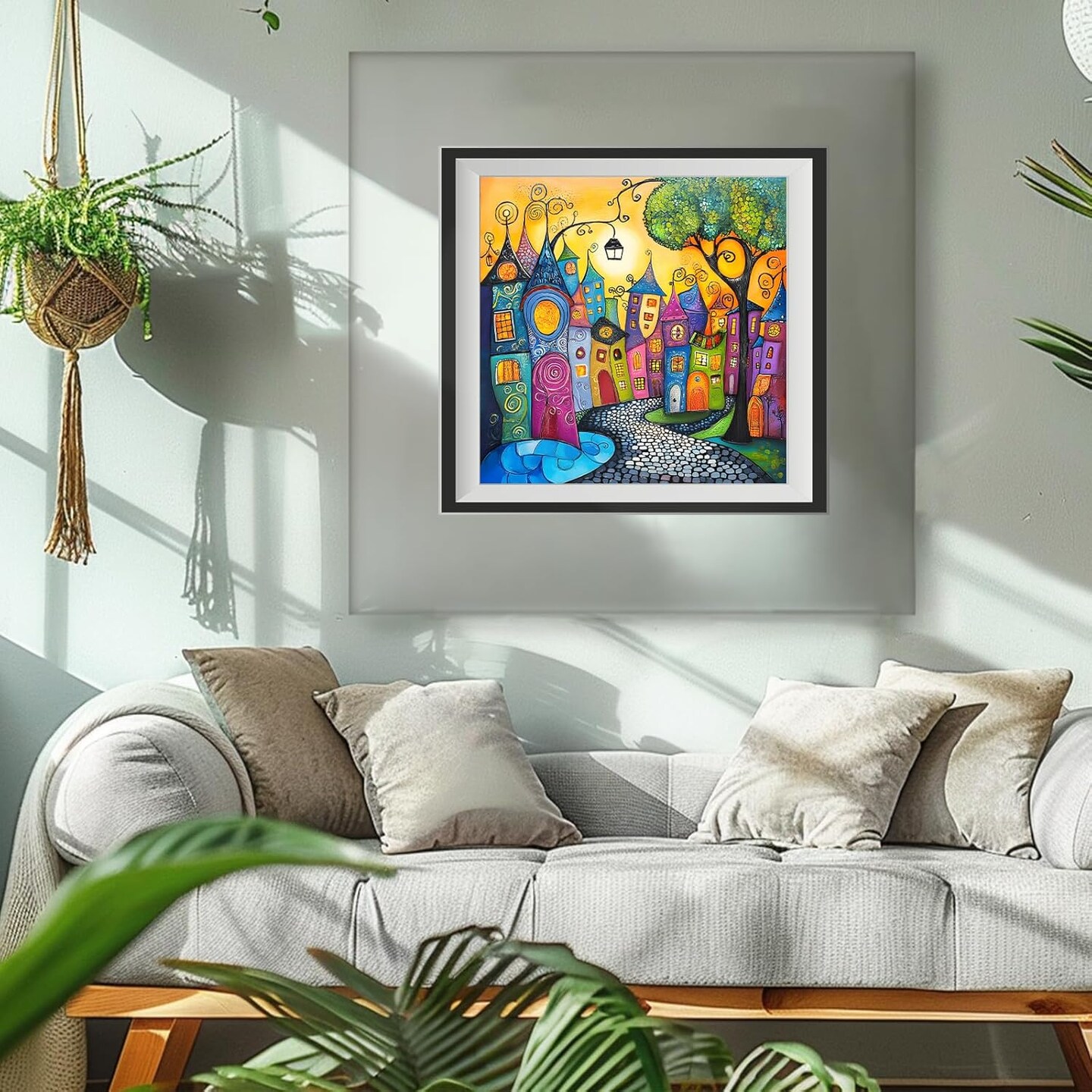 DIY Colorful Houses Diamonds Painting Kits for Adults, 5D Full Drill Diamond Art Painting Kits, Street Houses Gem Arts and Crafts for Home Wall Decor 12X12in