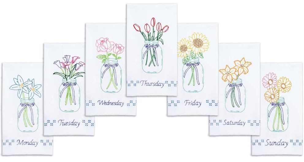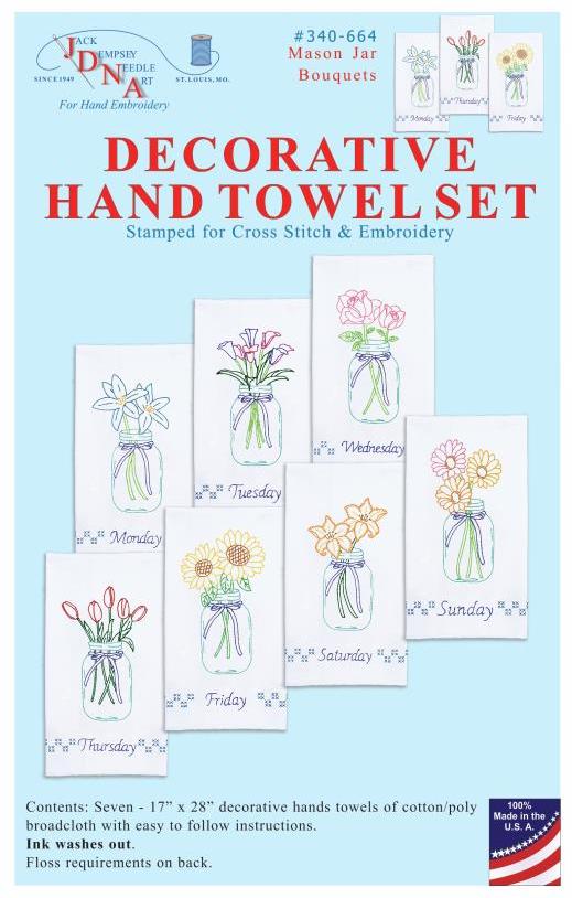 DIY Dempsey Mason Jar Bouquets Flower Stamped Cross Stitch Guest Hand Towel Kit