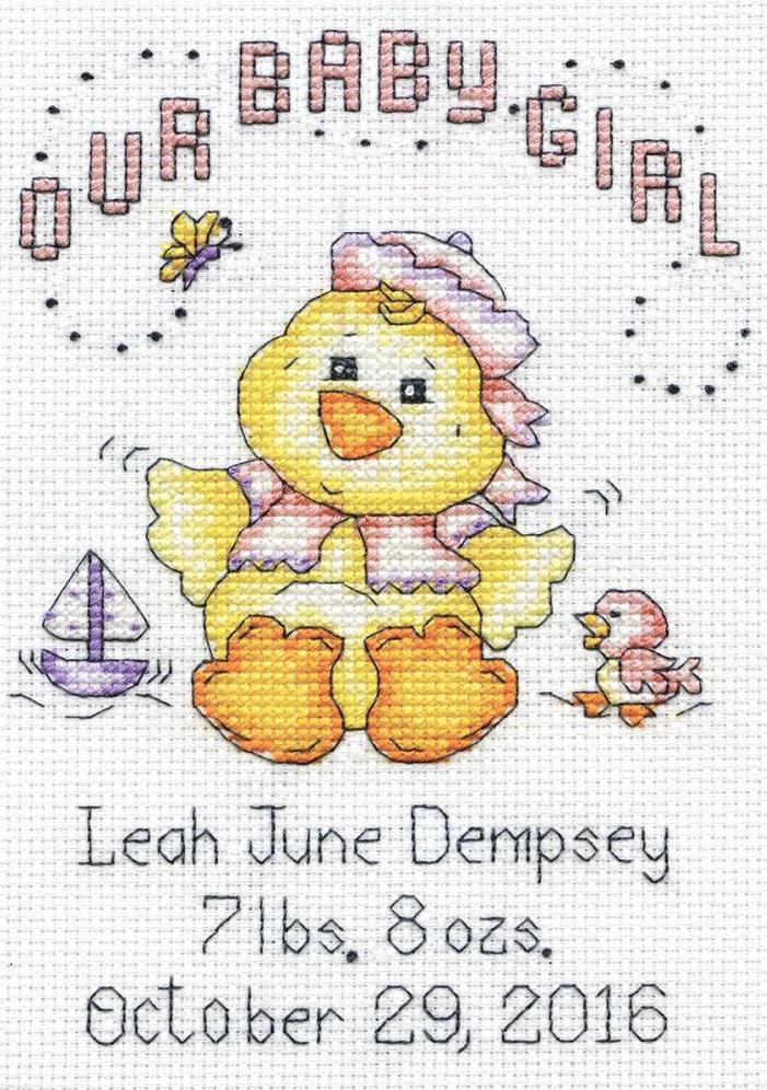 DIY Design Works Baby Chick Girl Birth Record Counted Cross Stitch Kit 5x7