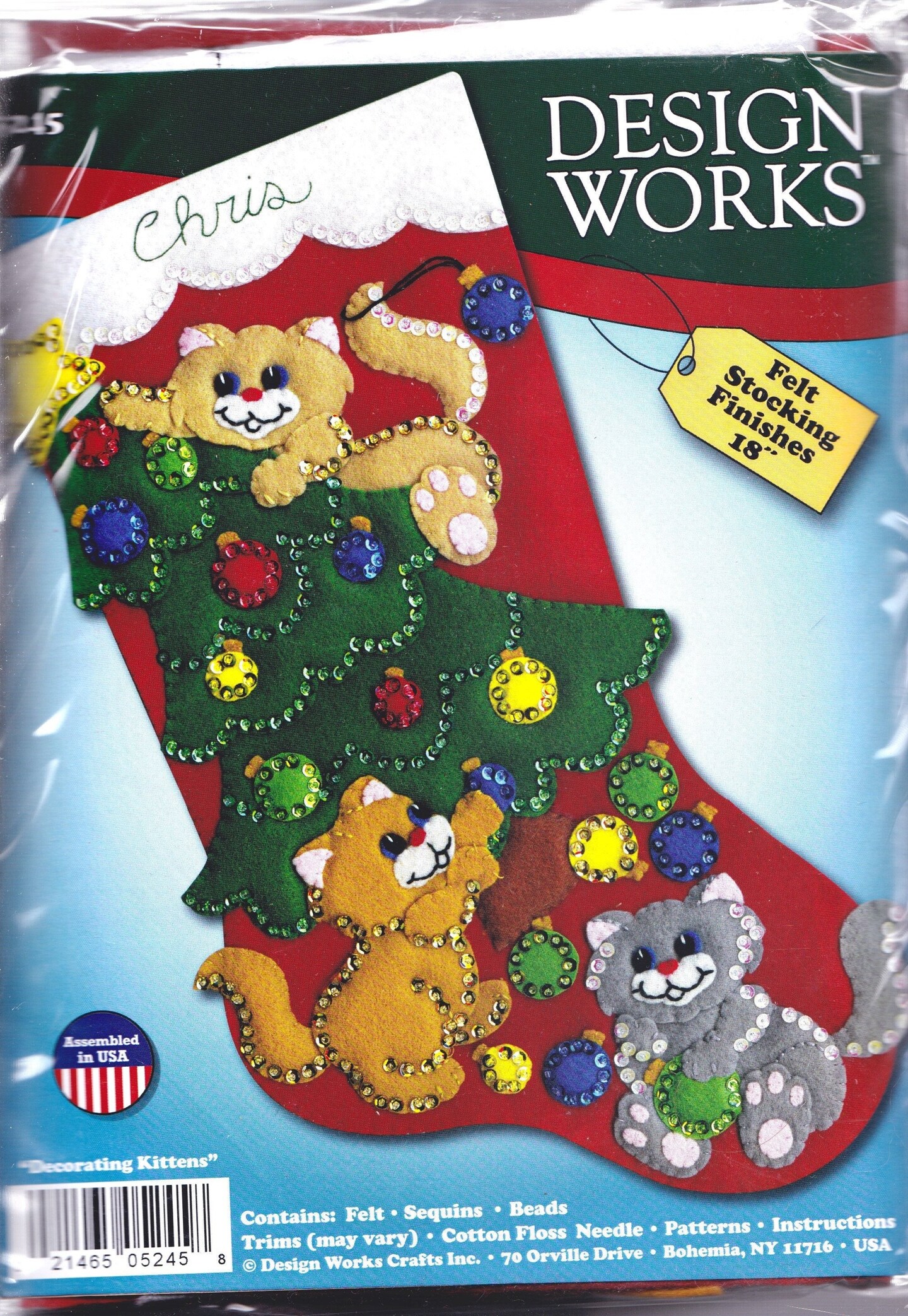 DIY Design Works Decorating Kittens Cat Christmas Holiday Felt Stocking Kit 5245