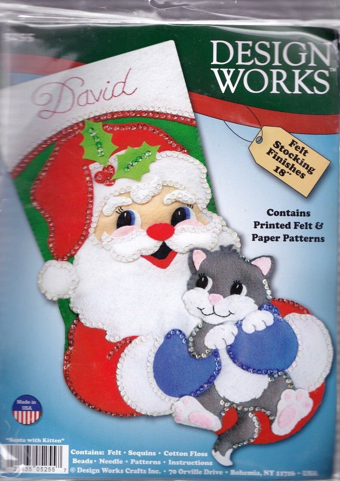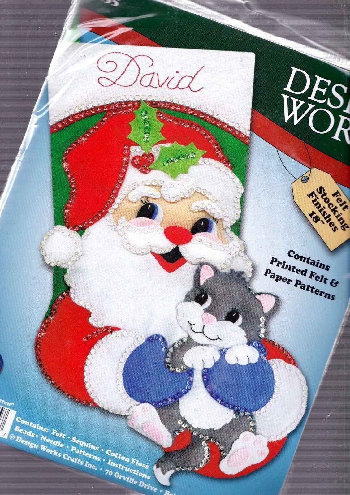 DIY Design Works Santa Kitten Gray Cat Holiday Christmas Felt Stocking kit 5255