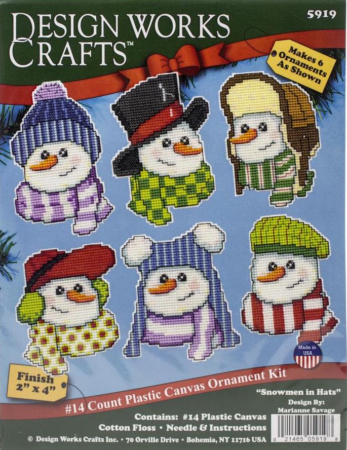 DIY Design Works Snowmen in Hats Christmas Plastic Canvas Ornament Kit 5919