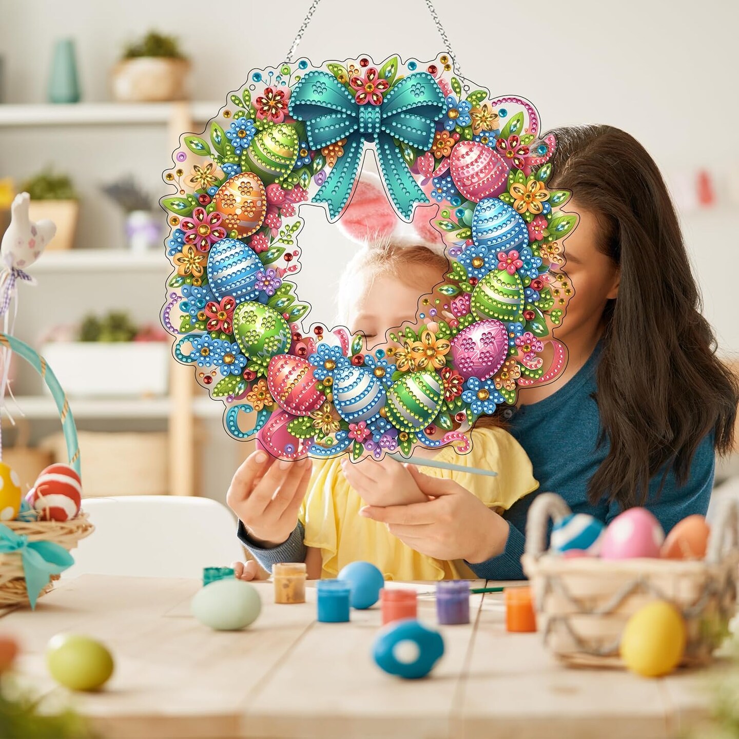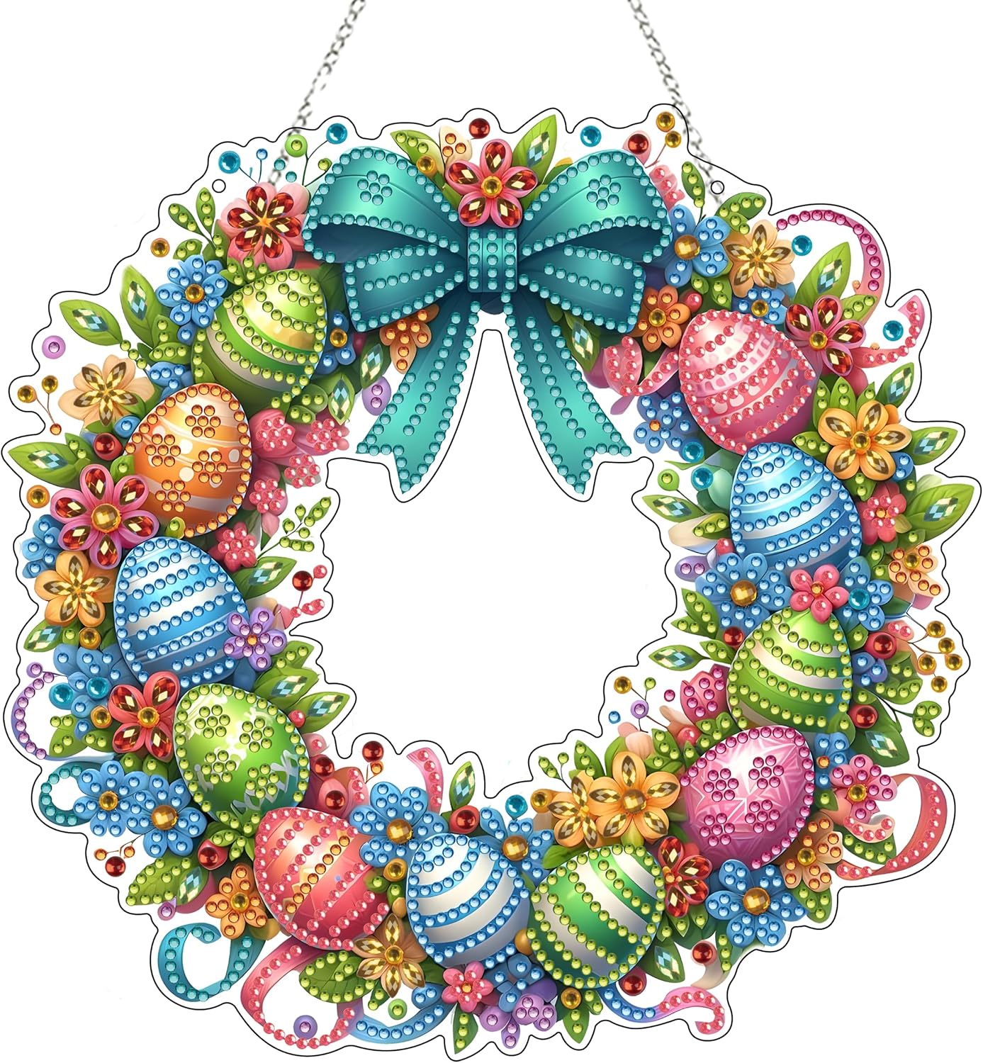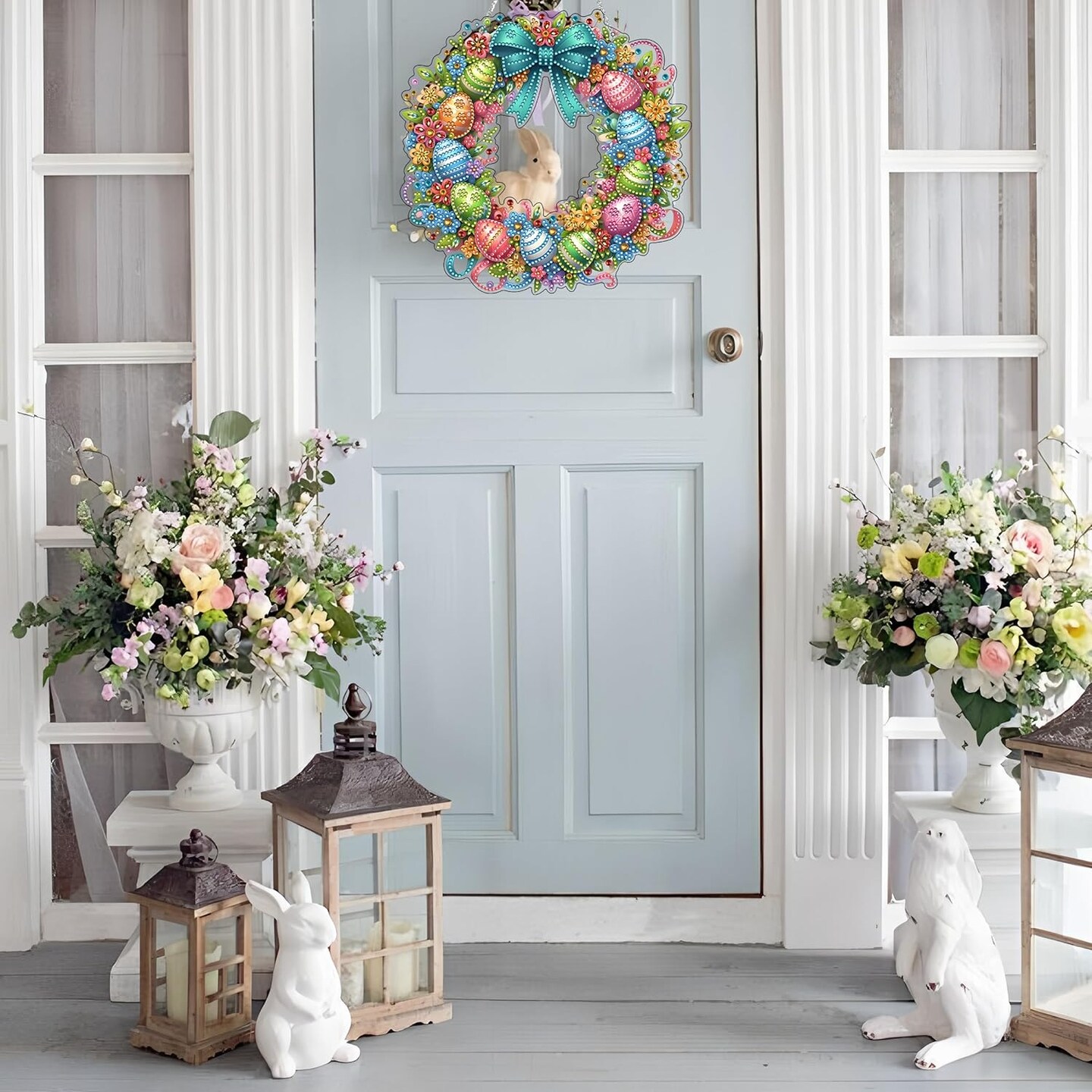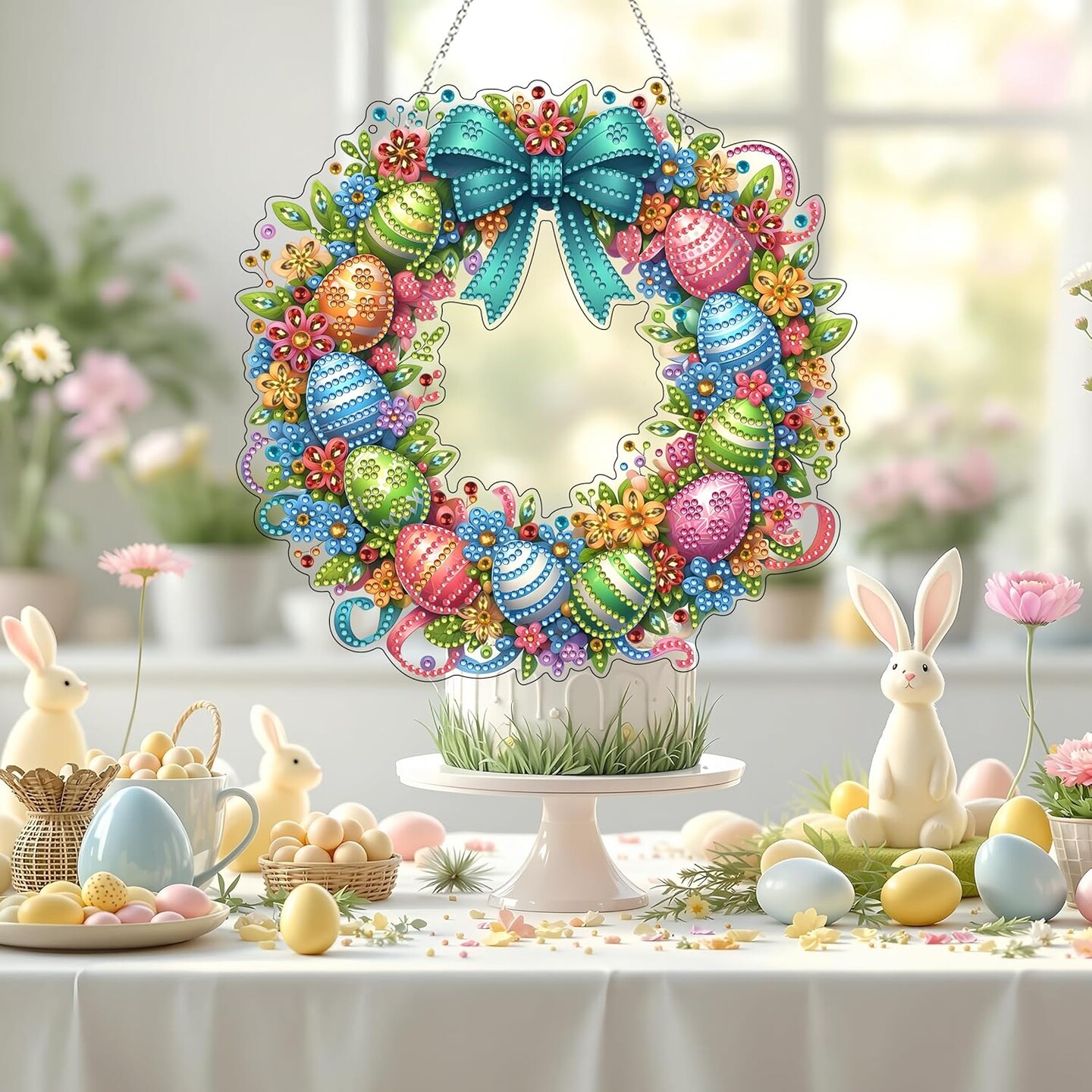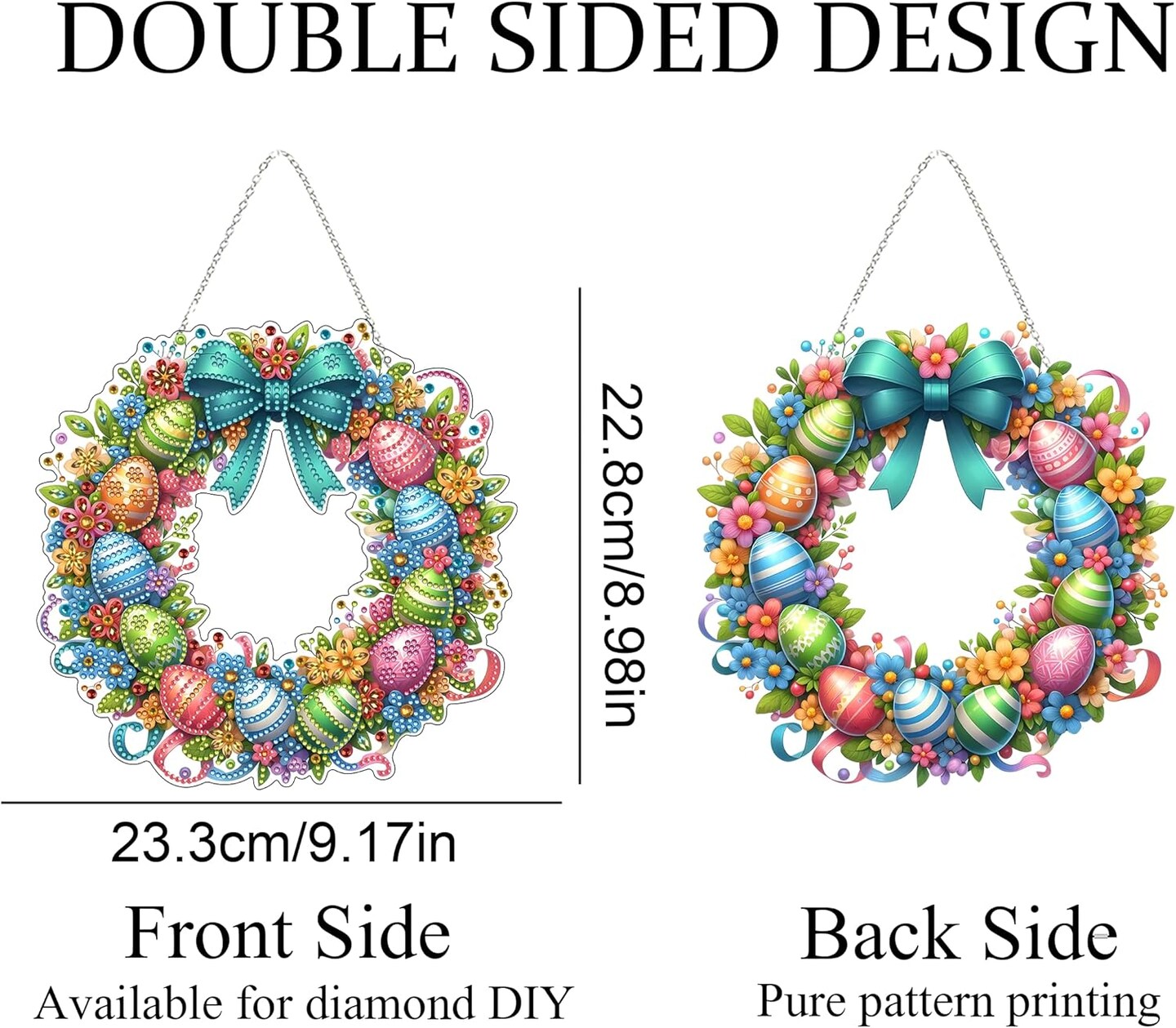 DIY Diamond Art Wreath Kit – Double-Sided Rhinestone Hanging Ornament – Window & Wall Decor for Home, Garden, and Gifts – Easter Wreath