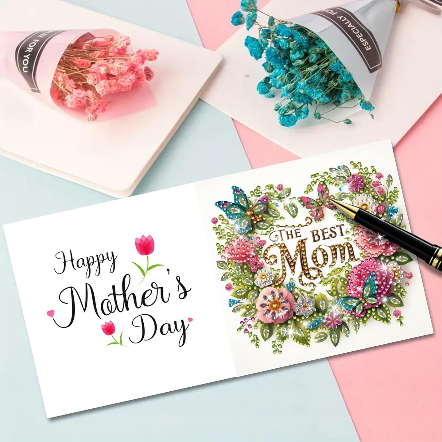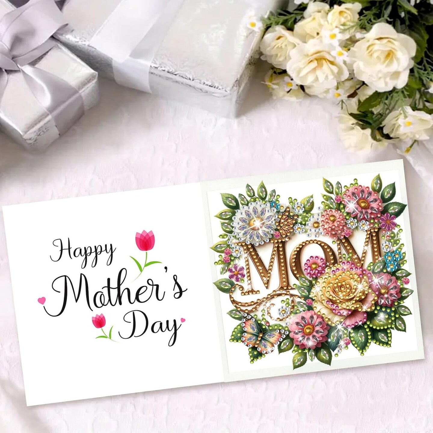 DIY Diamond Greeting Cards Set – 5D Diamond Art Festival & Holiday Cards, DIY Christmas & Mother's Day Card Making Kit for Handmade Gifts