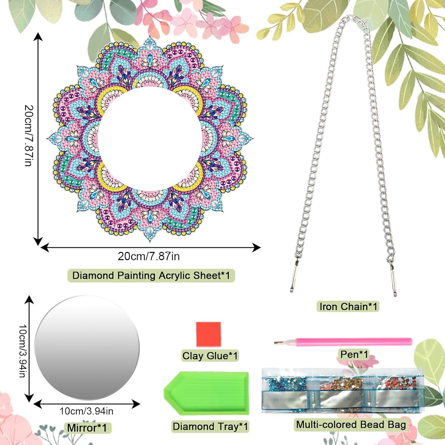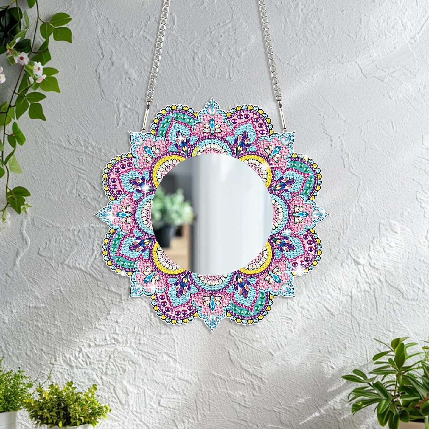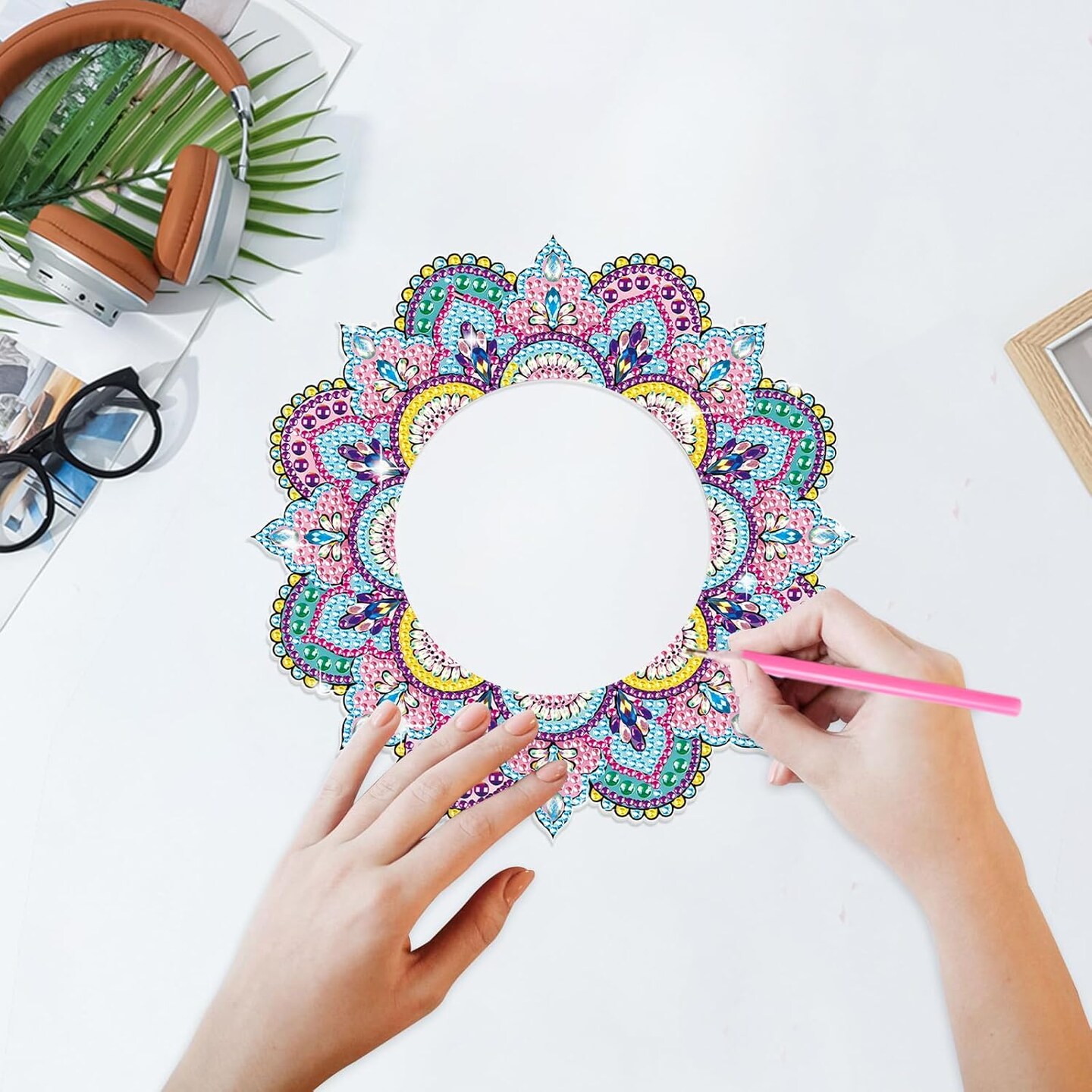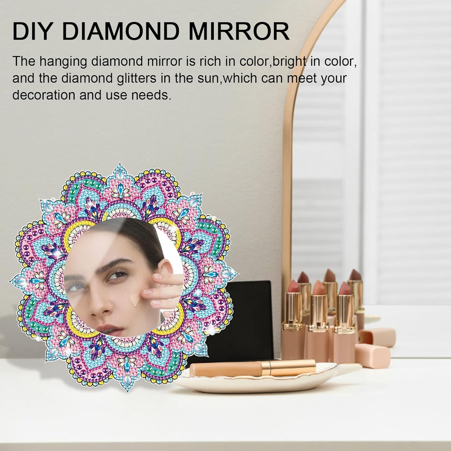 DIY Diamond Painting Mirror Kit for Adults – Special Shaped Crystal Mandala Mirror, Pink-Blue, DIY Art Craft for Christmas, Halloween, Birthday Gifts & Home Decor