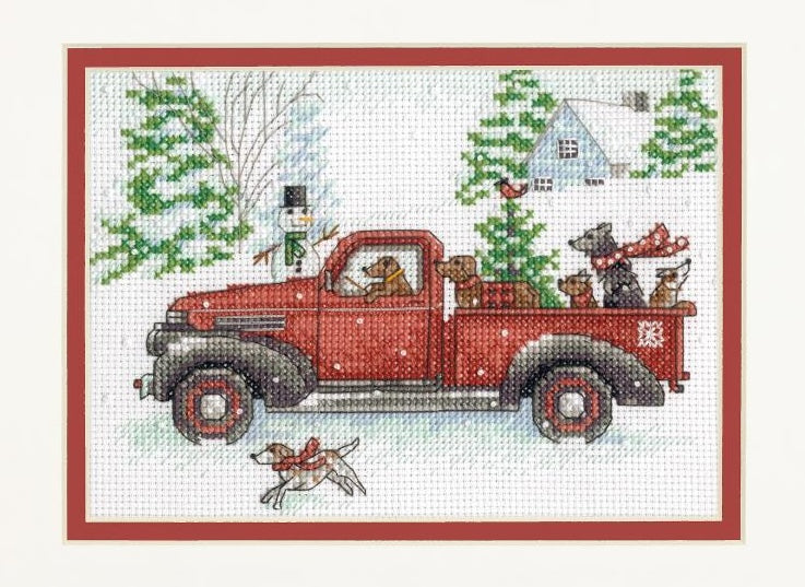 DIY Dimensions Joy Ride Dog Truck Christmas Counted Cross Stitch Kit 5x7