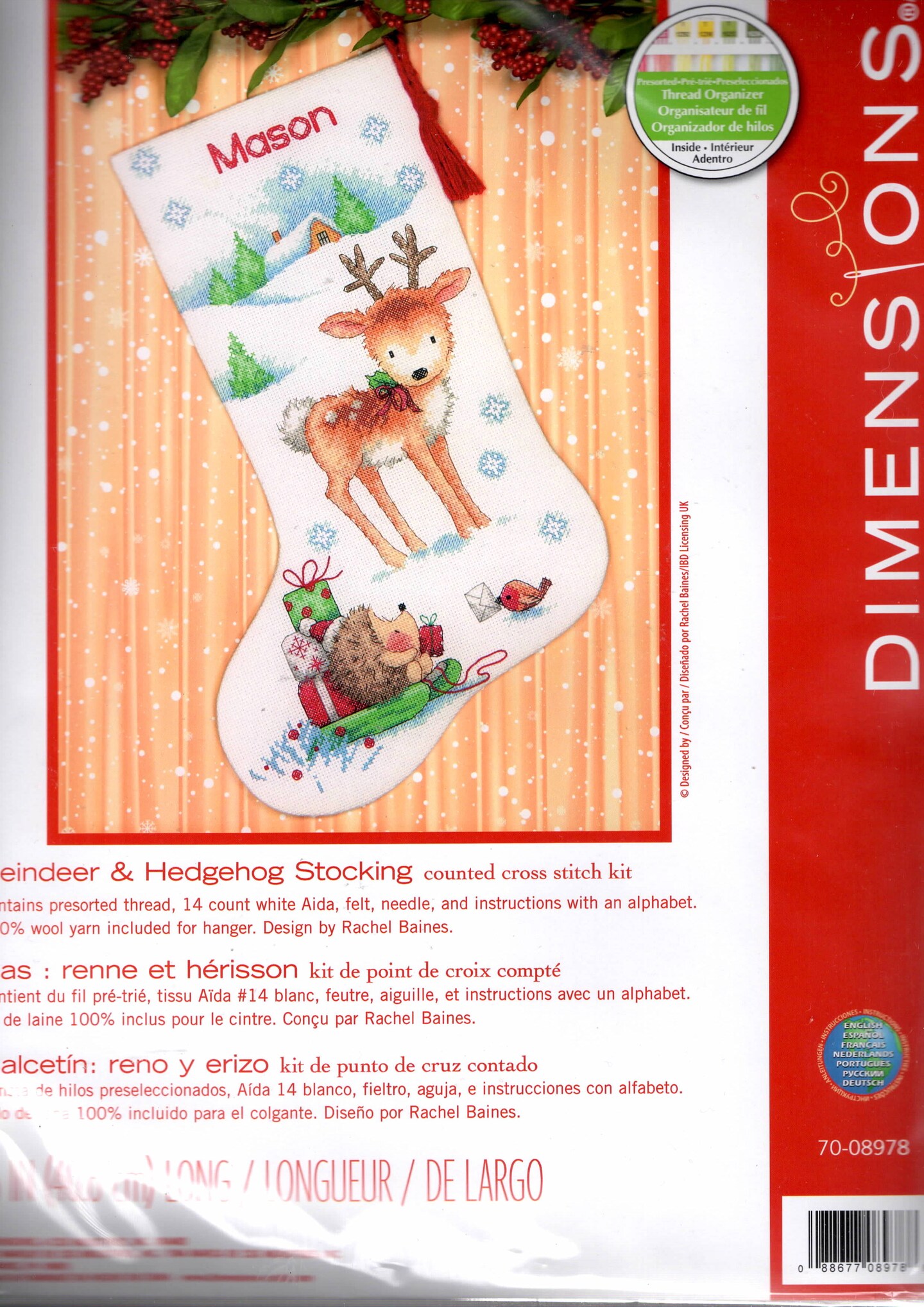 DIY Dimensions Reindeer & Hedgehog Counted Cross Stitch Stocking Kit 08978