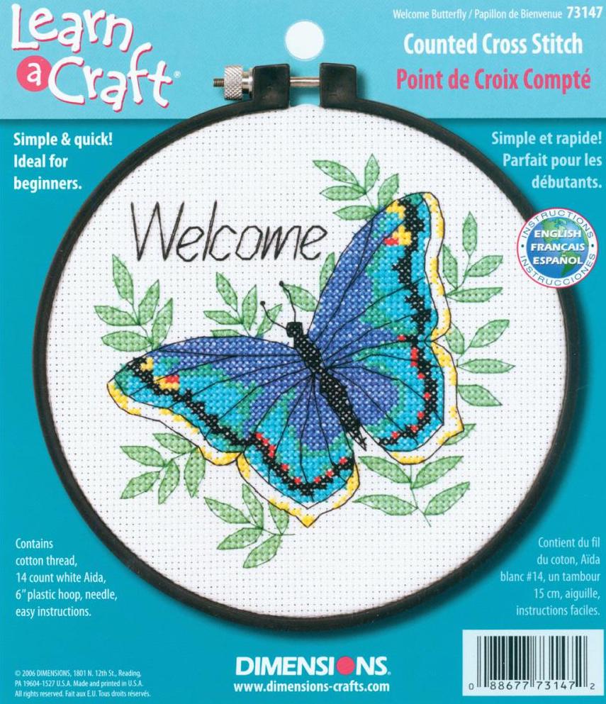 DIY Dimensions Welcome Butterfly Spring Summer Counted Cross Stitch Hoop Kit