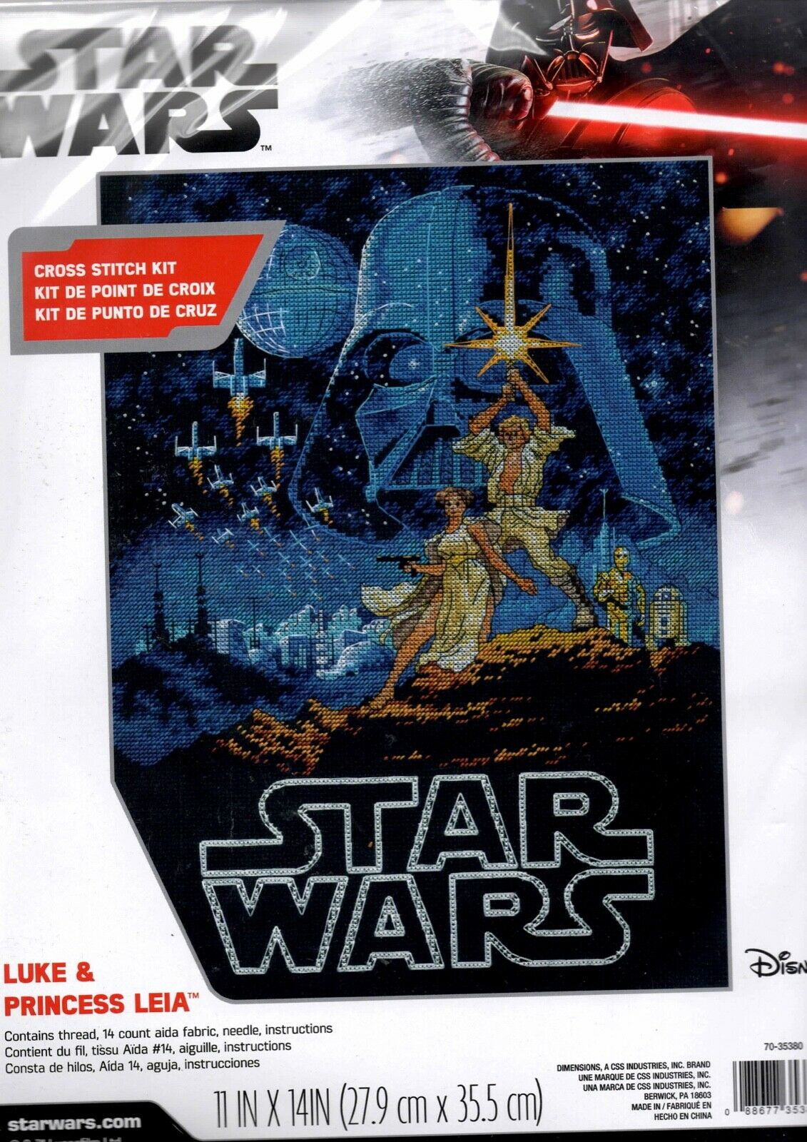 DIY Disney Star Wars Luke & Leia Darth Vador Counted Cross Stitch Kit 11x14