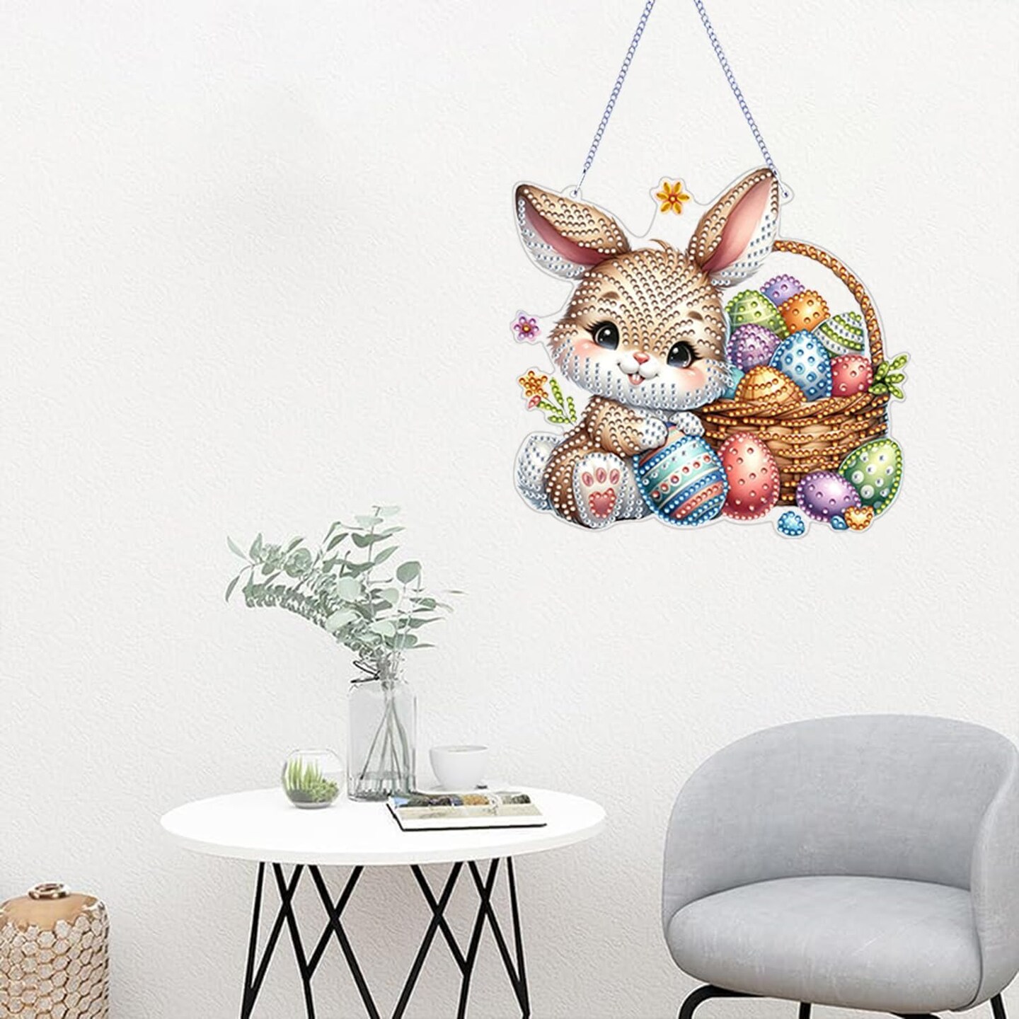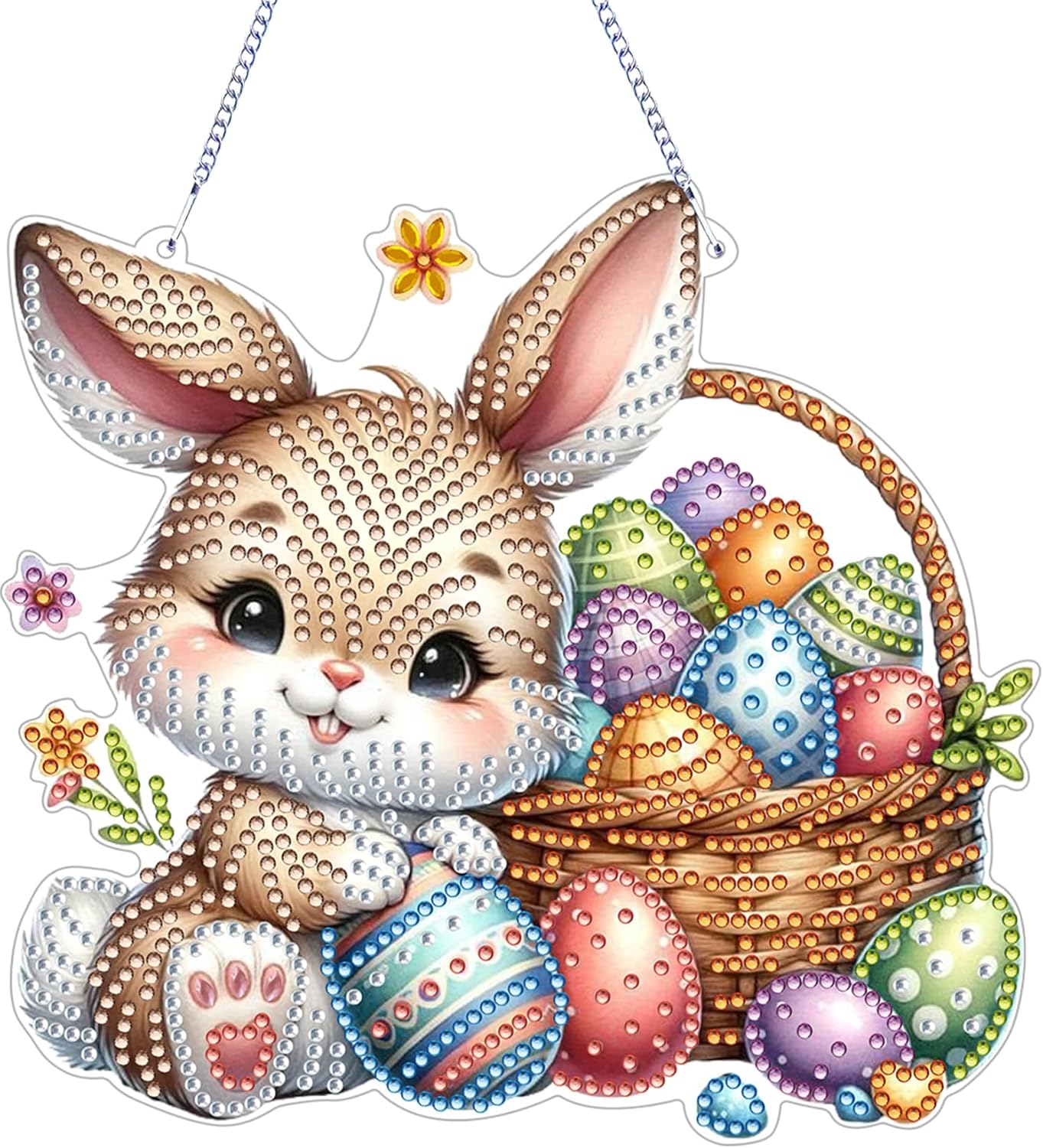 DIY Easter Bunny Hanging Diamond Art Kit – Special Crystal Resin Pendant 6.6×7 Inch Acrylic Diamond Painting Ornament