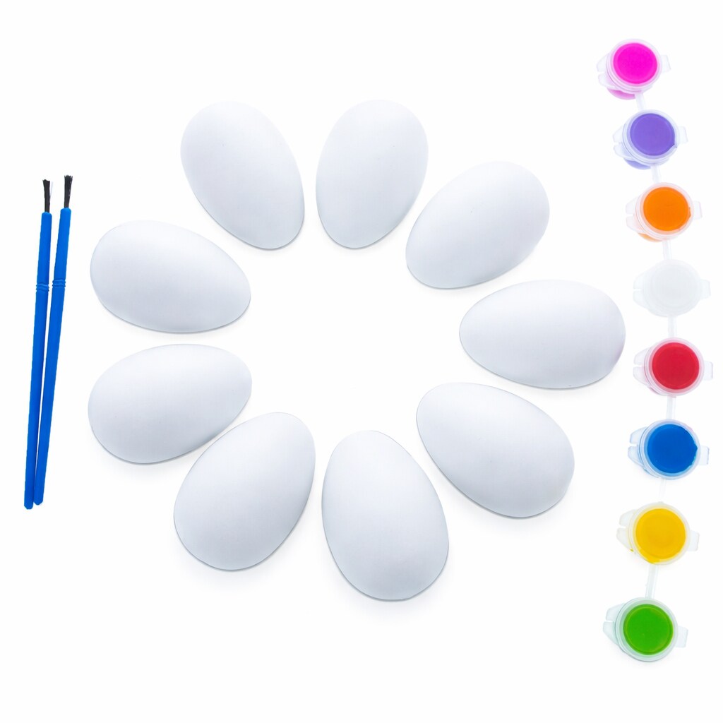 DIY Easter Egg Painting Kit – 9 Blank Plastic Eggs with 8 Paints & 2 Brushes for Decorating