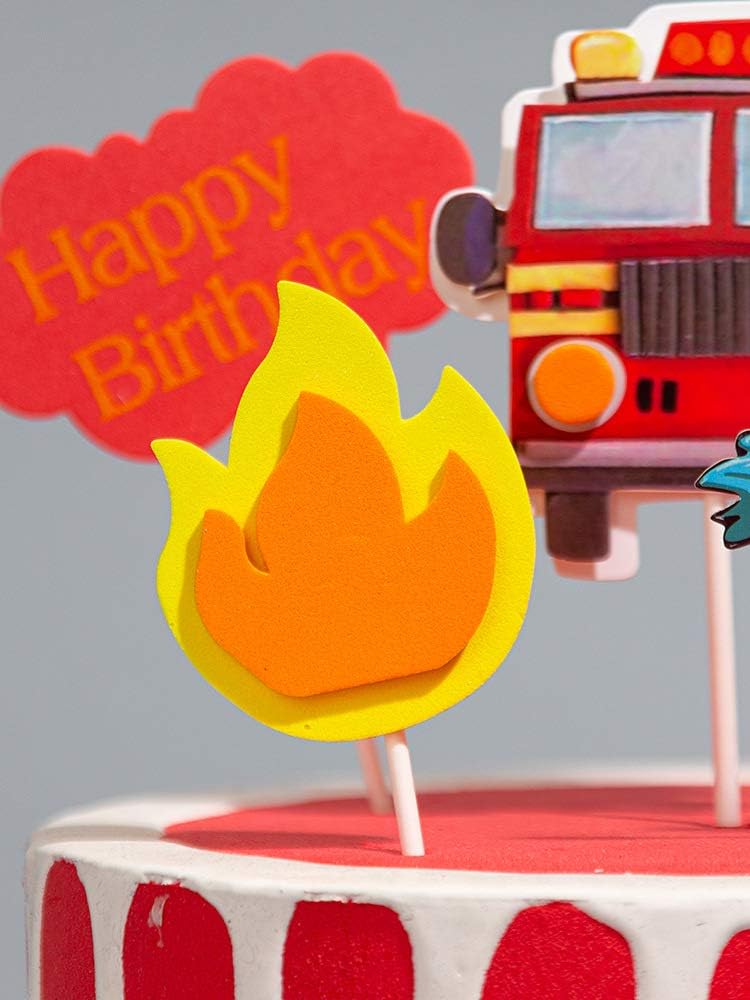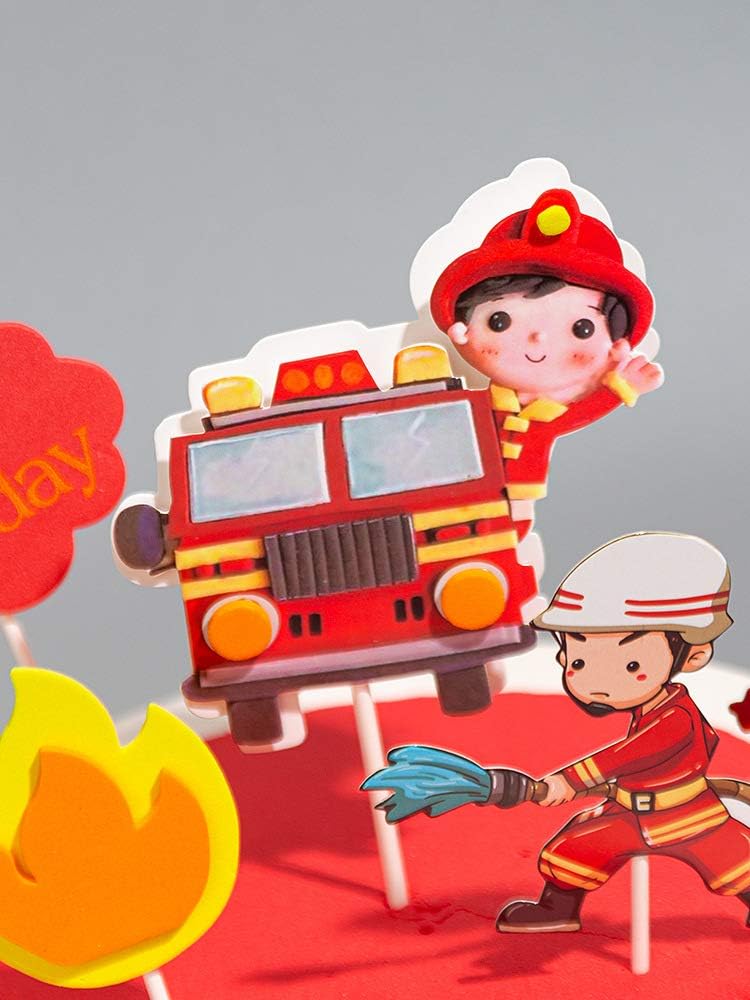 DIY fire engine cake toppers, firefighter Hero birthday cake decoration Supplies and Fire Flame Rescue Theme Cake Decorations for Firefighter Graduation Birthday(5pcs-pack)