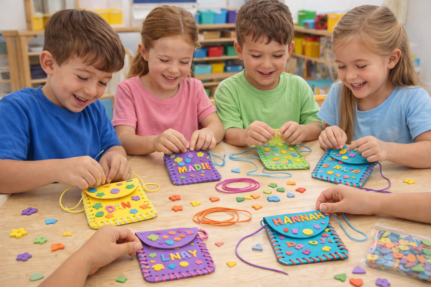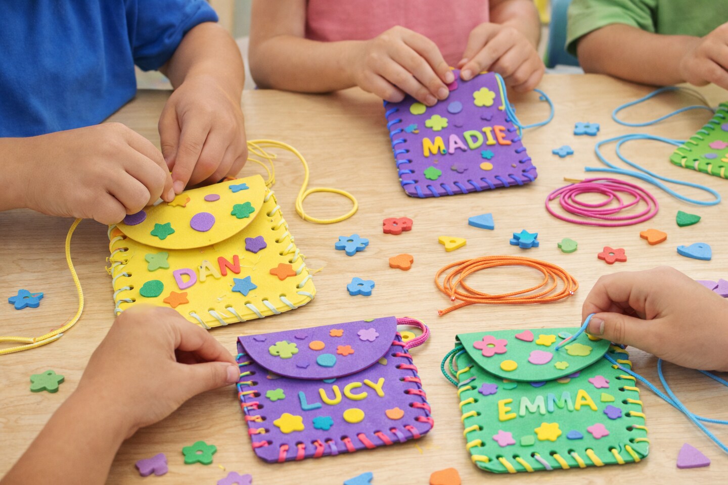 DIY Foam Lacing Coin Purse Craft Kit – Kids Sewing & Lacing Activity, 4" x 4", 12 Pack