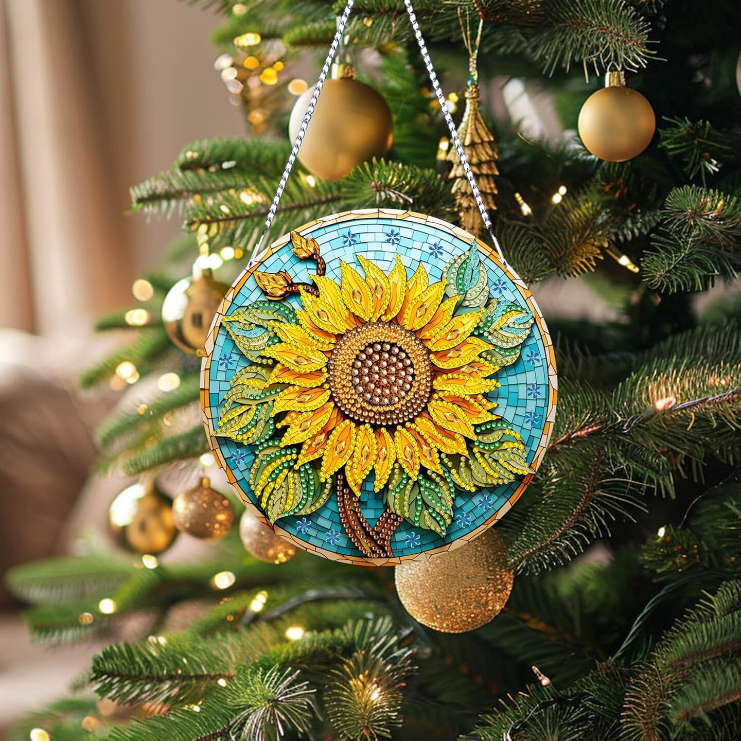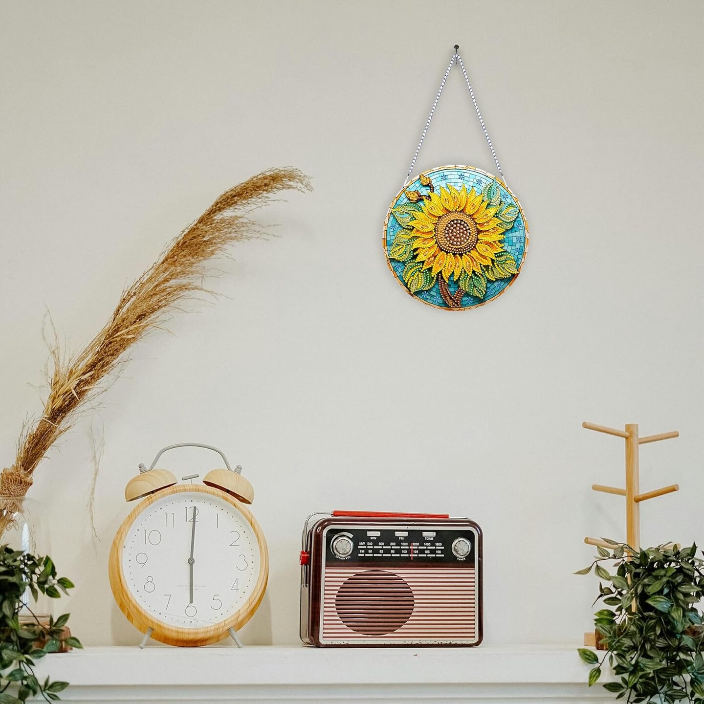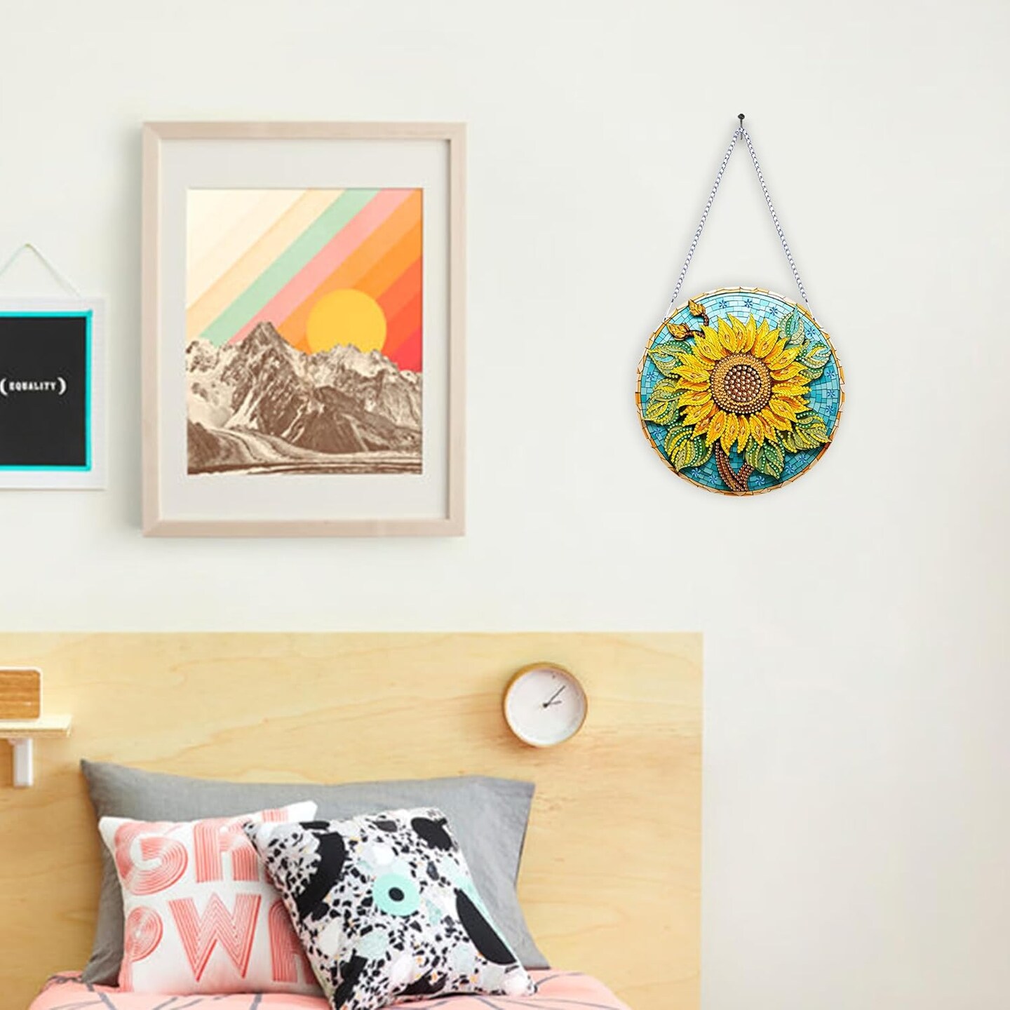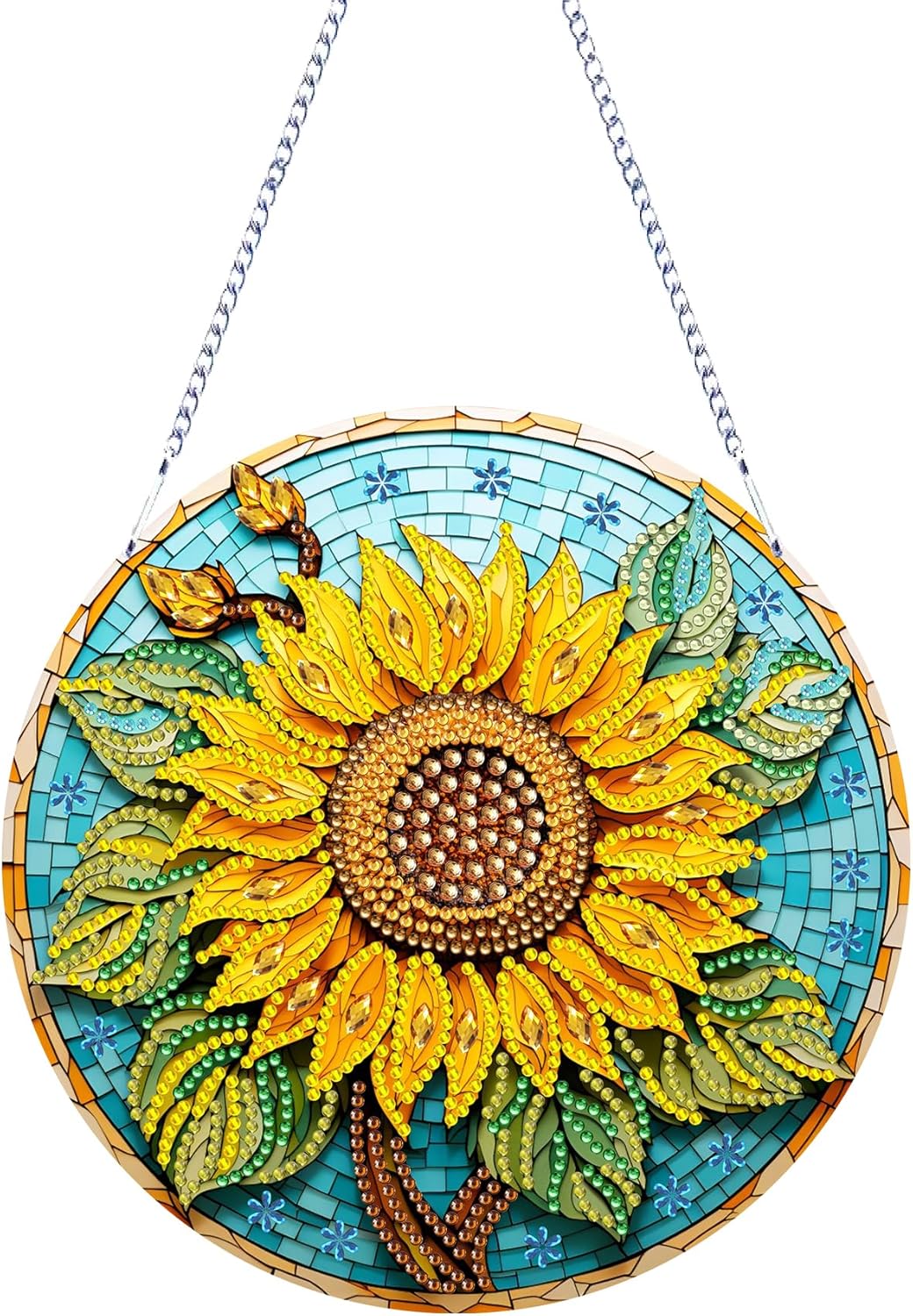 DIY Hanging Diamonds Painting Pendant Kit Sunflower, 7.4x7.4inch Gem Painting Board Art Kit Ornament, Special Crystal Diamond Craft Box Kit, Yellow