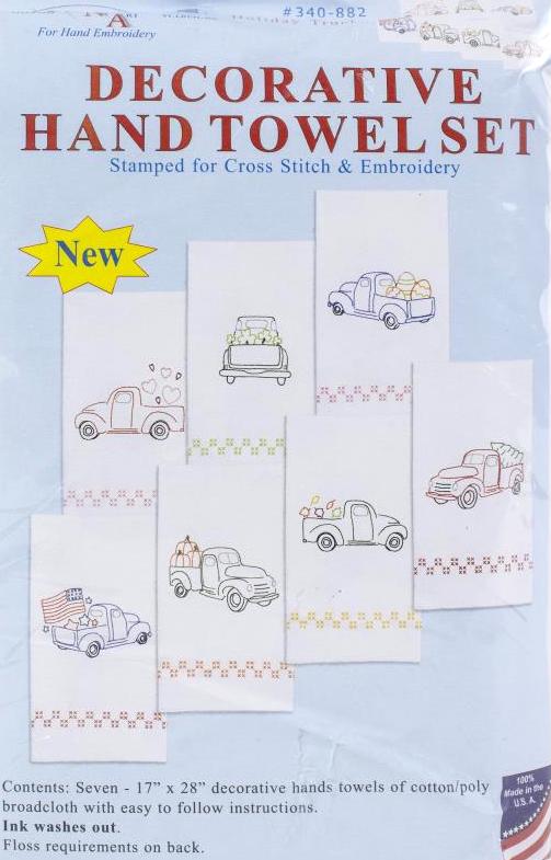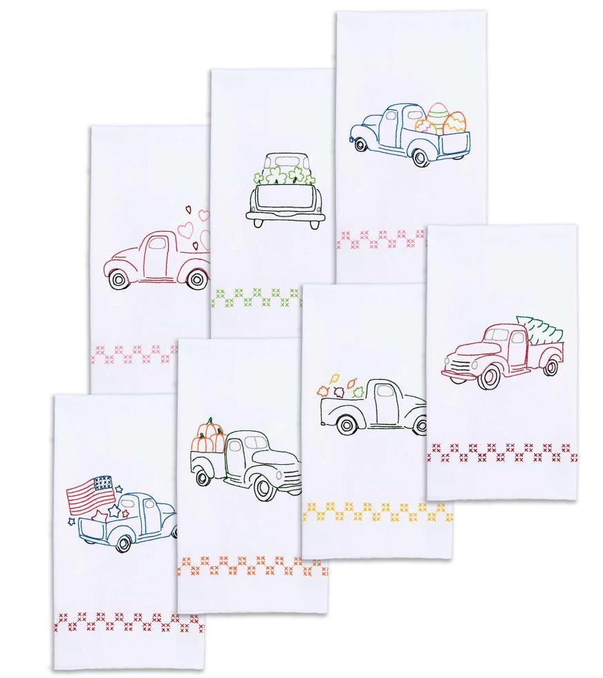 DIY Jack Dempsey Holiday Trucks Stamped Cross Stitch & Embroidery Hand Towel Kit