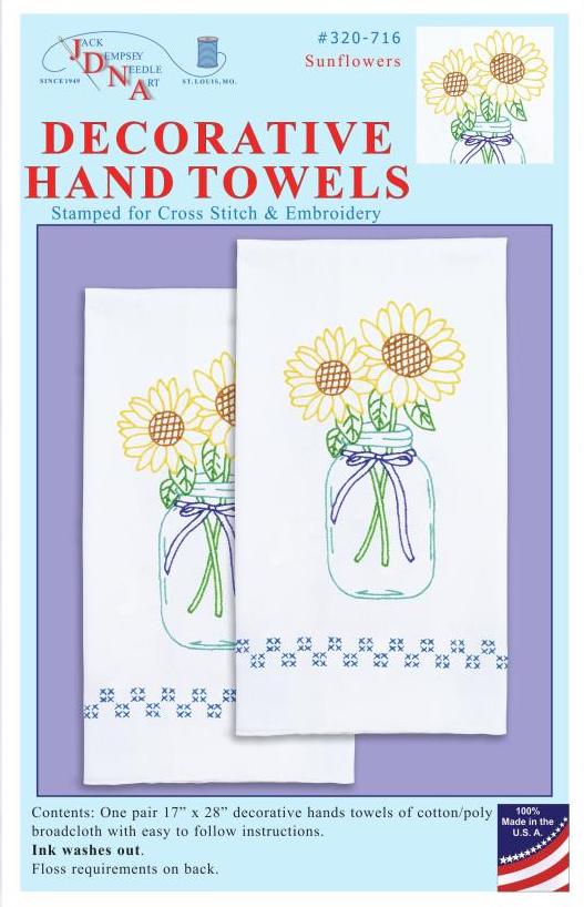 DIY Jack Dempsey Sunflowers Jar Stamped Cross Stitch Guest Hand Towel Kit 320716