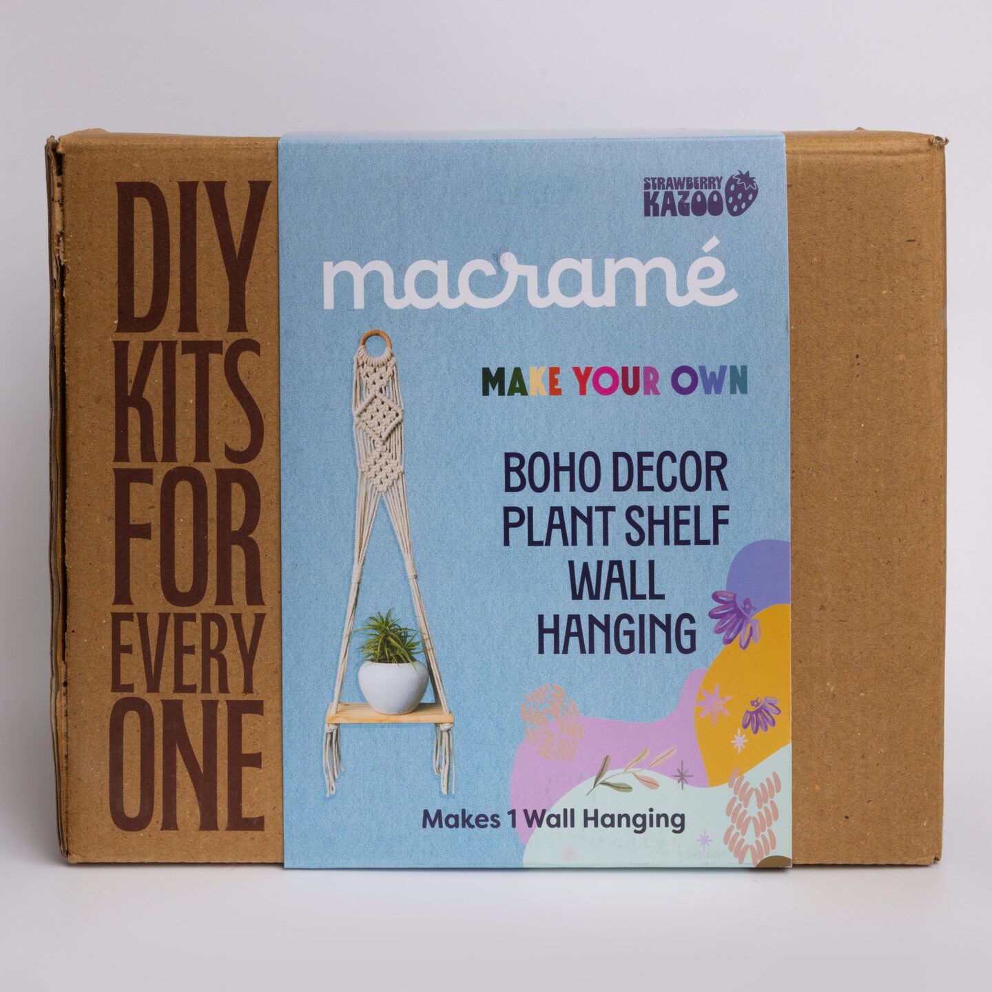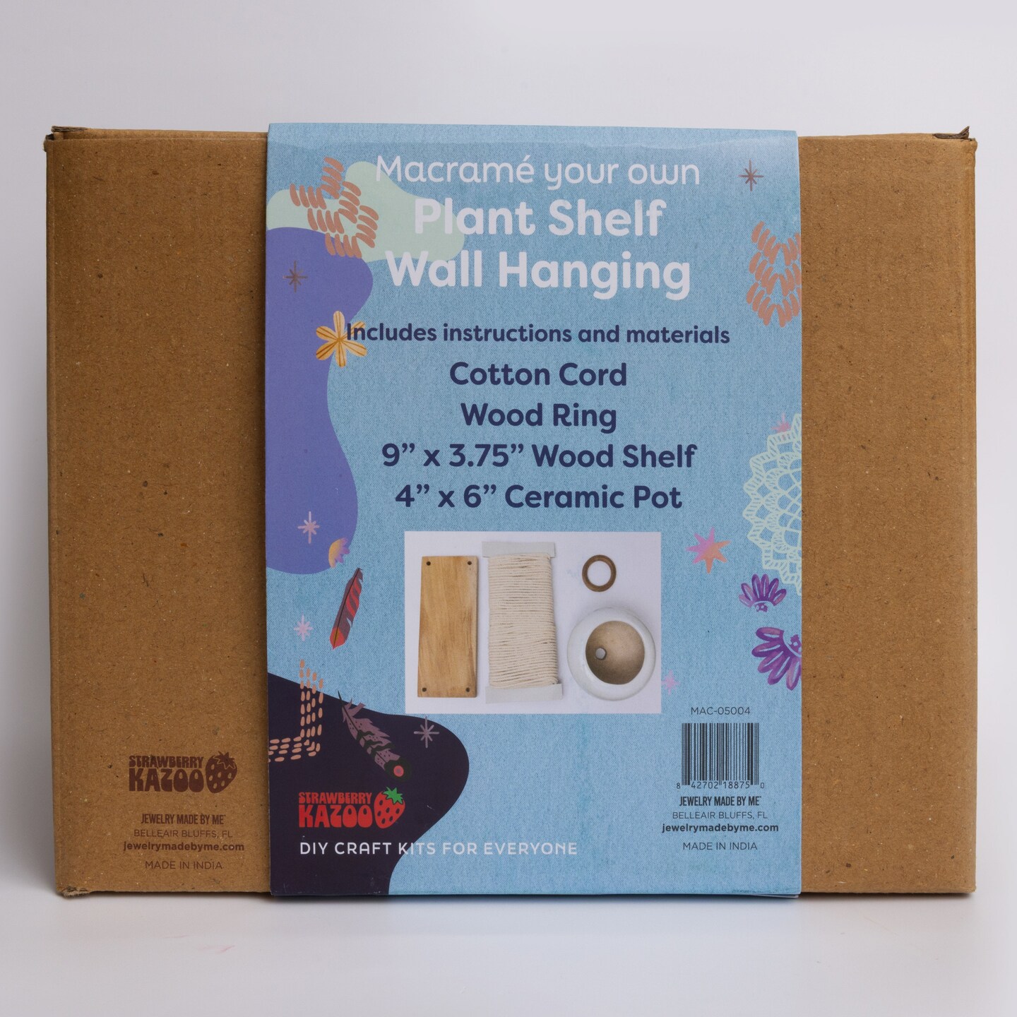DIY Macramé Plant Shelf Kit – Boho Wall Hanging with Cotton Cord, Wood Shelf & Ceramic Pot