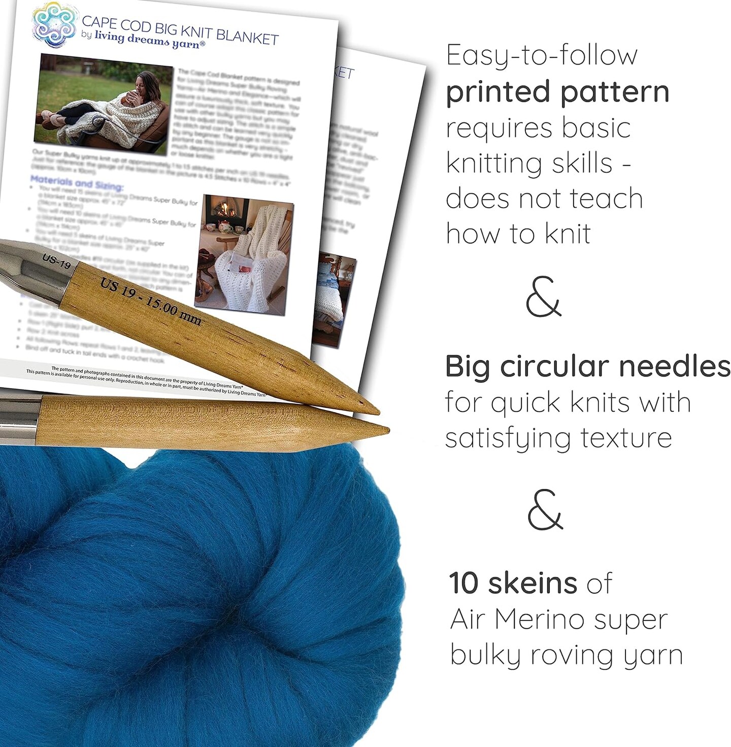 DIY Merino Wool Blanket Knitting Kit: Soft and Thick #7 Weight Jumbo Yarn, Knitting Needles and Pattern. Soft, Cozy, Great for Gifts