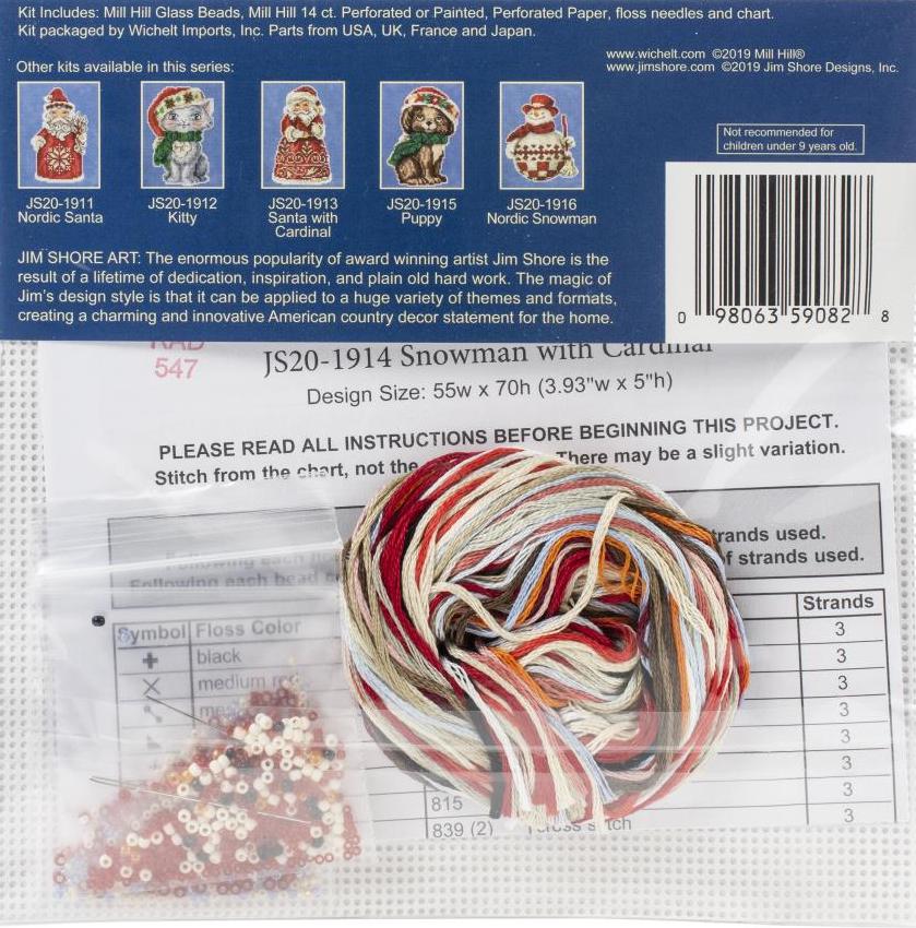 DIY Mill Hill Snowman Cardinal Jim Shore Winter Bead Cross Stitch Ornament Kit