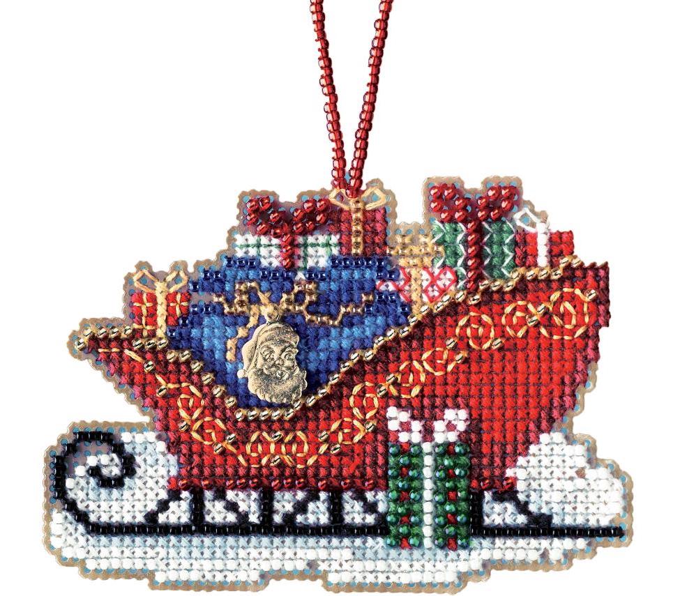 DIY Mill Hill Traditional Sleigh Christmas Glass Bead Cross Stitch Ornament Kit