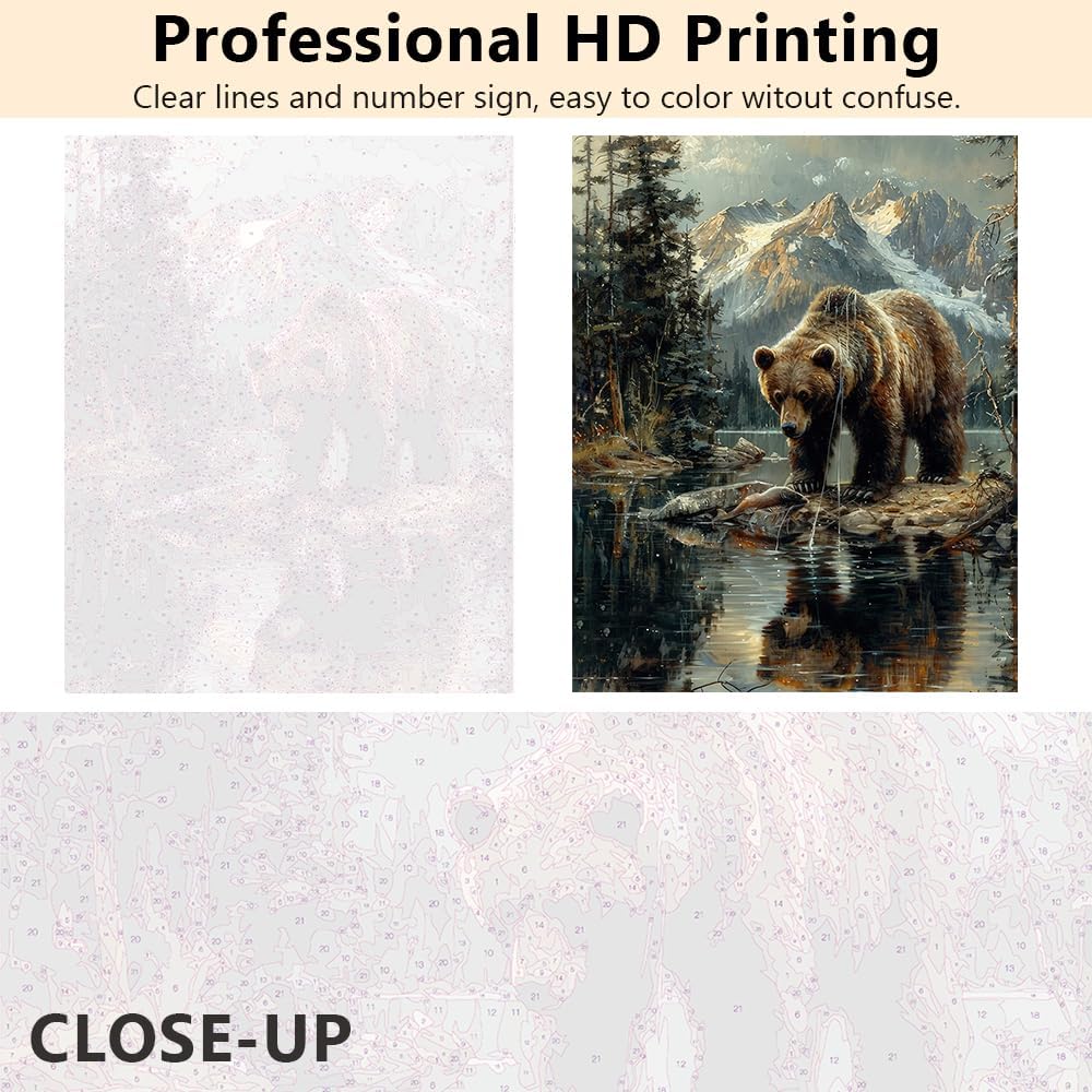 DIY Paint-by-Number Kit for Adults, Bear Design on Canvas, 16×20 Inch Frameless Color-by-Number Art Craft Set