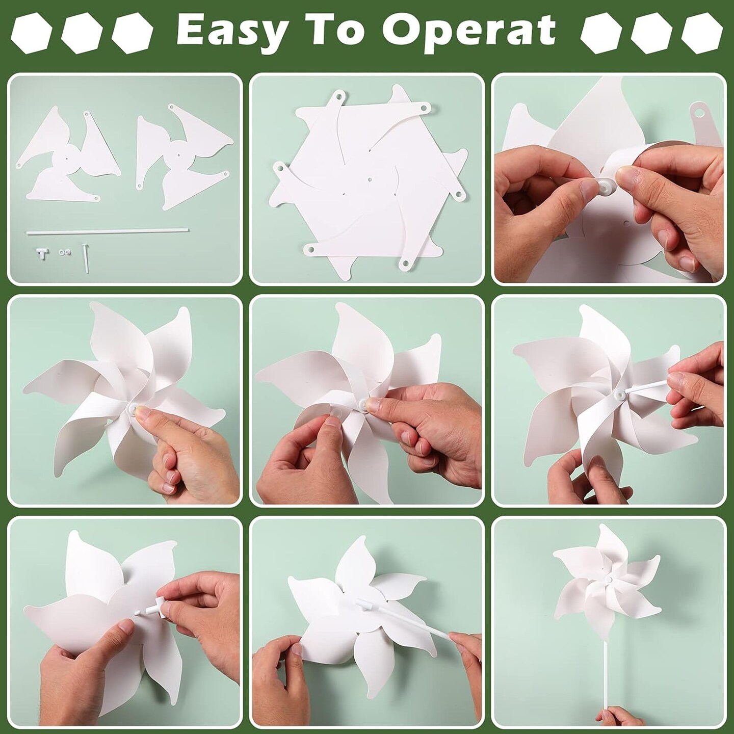 DIY Pinwheels Craft for Kids Blank White Color Your Own Pinwheels Paper Craft Kits for Boys Girls Summer Activities Art Daycare Project Party Favor, 15 Inches
