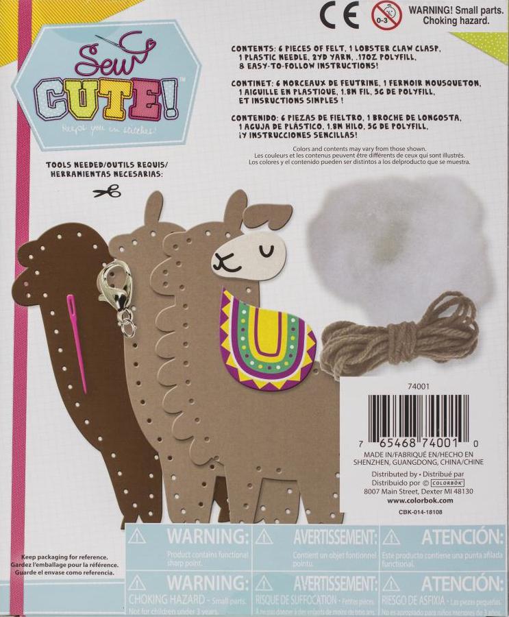 DIY Sew Cute Llama Kids Beginner Felt Backpack Clip Sewing Kit