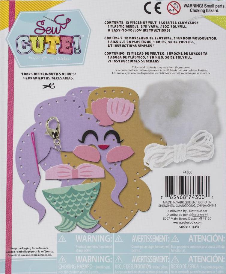 DIY Sew Cute Mermaid Kids Beginner Felt Backpack Clip Sewing Kit