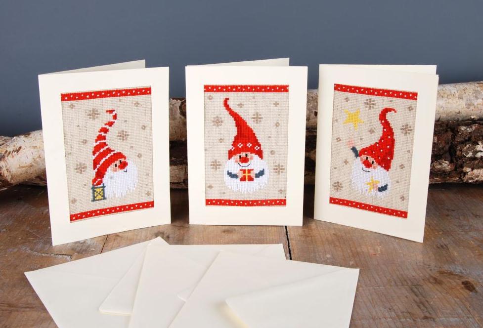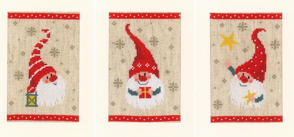 DIY Vervaco Christmas Cards Craft Gnomes Elves Santa Counted Cross Stitch Kit 1