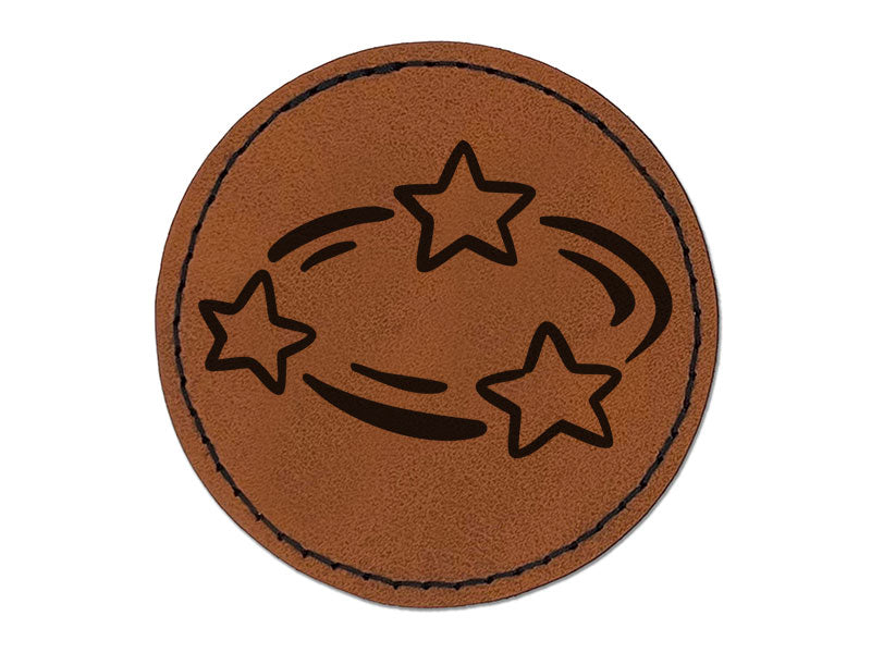 Dizzy Confused Circling Stars Cartoon Round Iron-On Engraved Faux Leather Patch Applique - 2.5 Inch