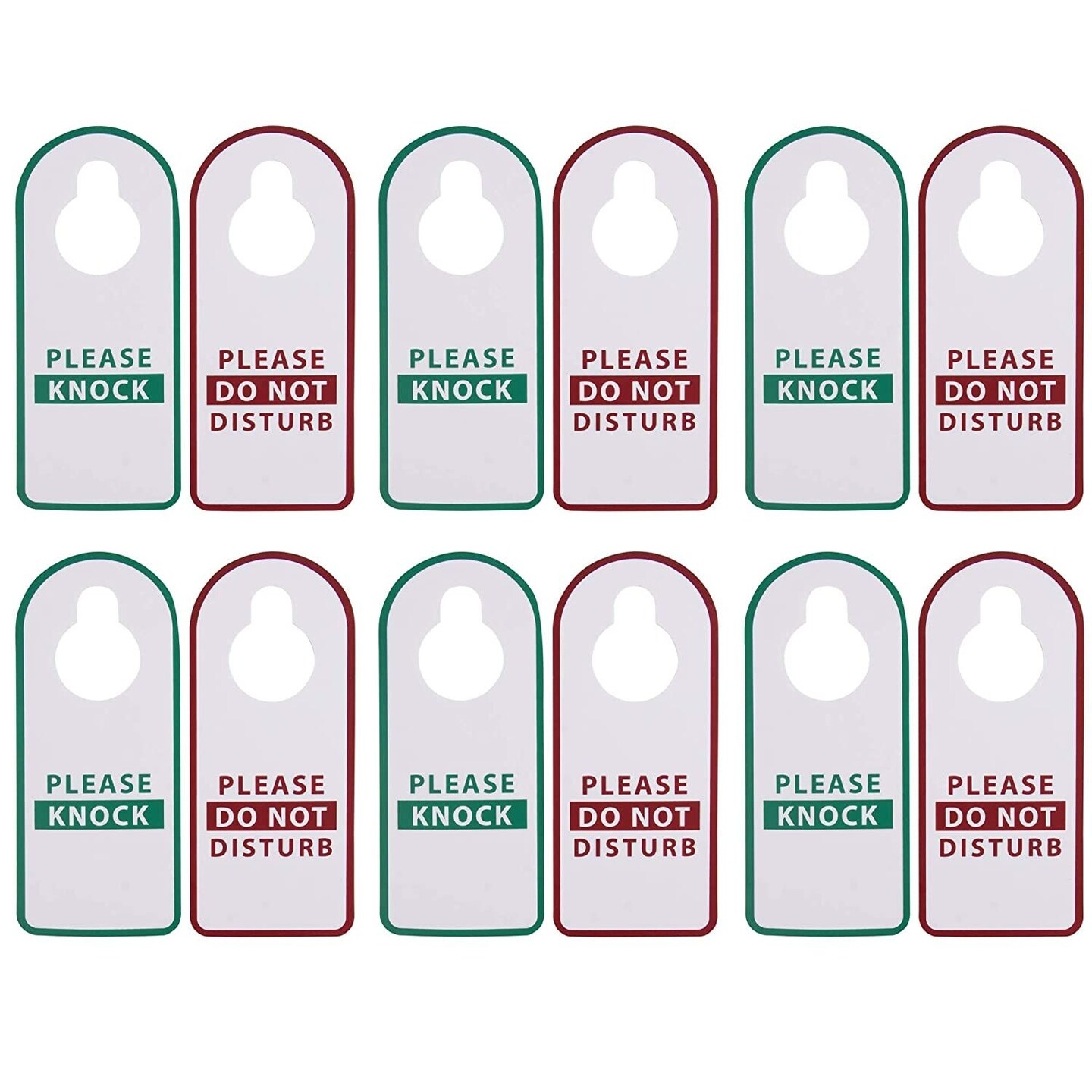 Do Not Disturb Sign - 12-Pack Do Not Disturb, Please Knock Door Hanger, Double Sided Plastic Door Knob Hanger for Privacy, Ideal for Home, Hotel Rooms, B&B, (3.5 x 9.8 in.)
