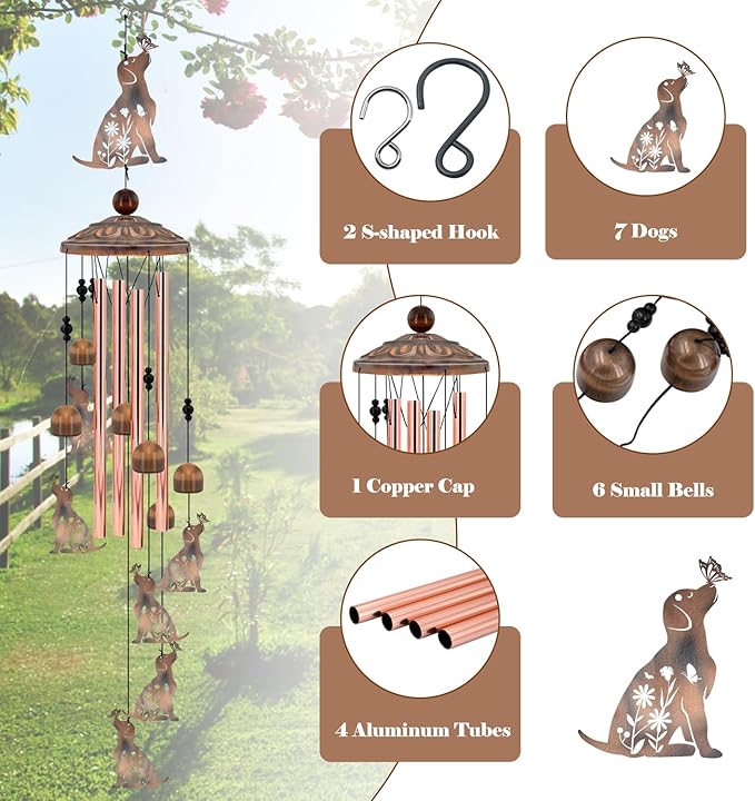 Dog Wind Chimes for Outside, 35‘’ Metal Dog WindChimes Gifts for Women/Men, Decoration for Outdoor, Home, Garden, Patio, Backyard