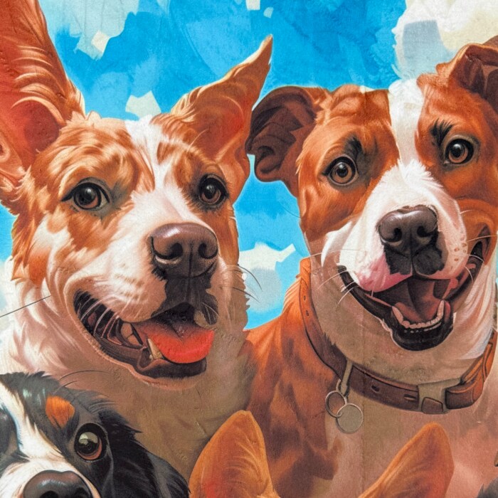 Dogs Take Selfie Silky Premium Fleece No-Sew Throw Fleece Fabric Kit (50x60)