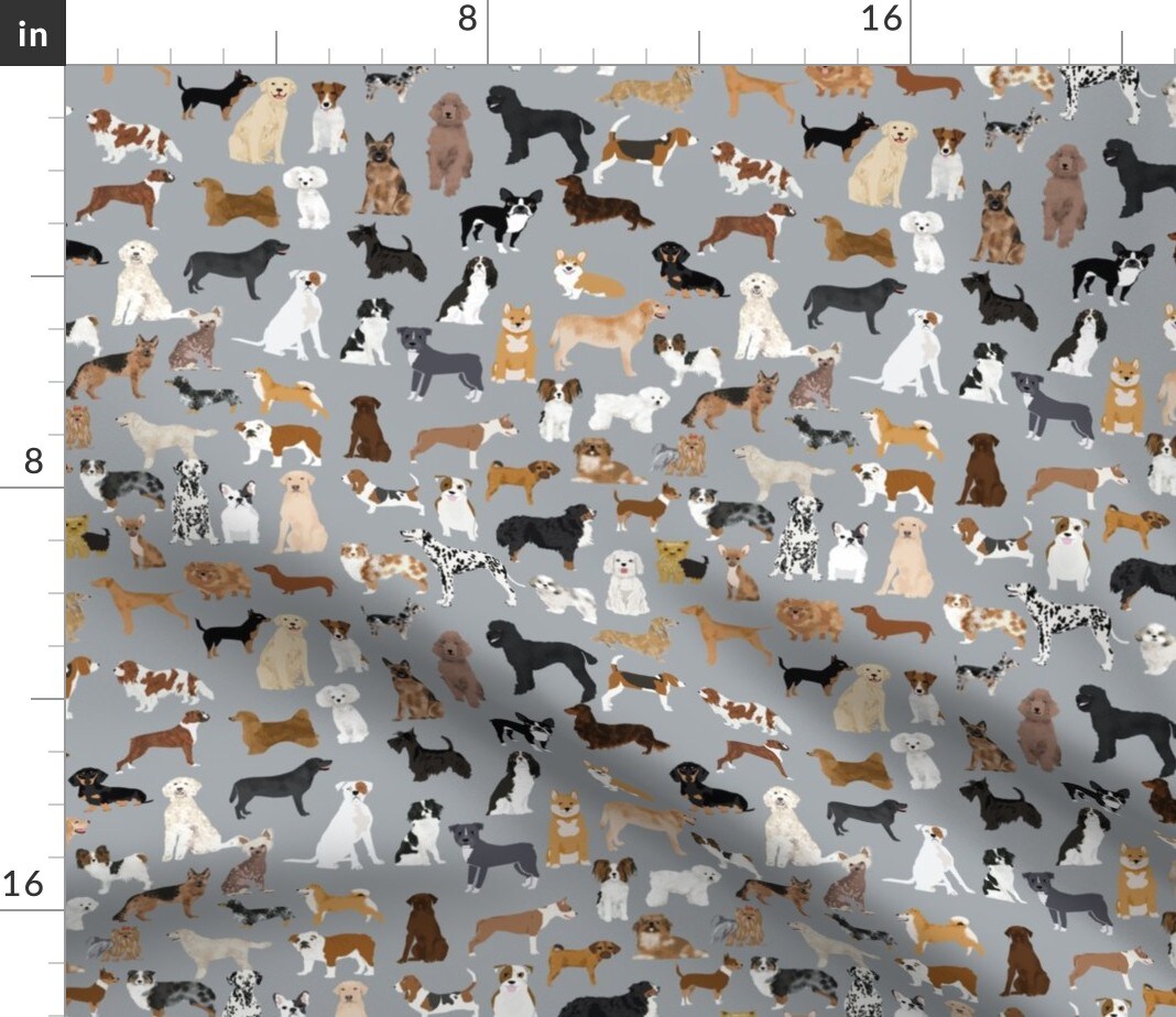 Dogs Watercolor Pets Animals Playroom Nursery Gray Custom Printed Fabric by Spoonflower Various Fabrics by the Yard or Fat Quarter