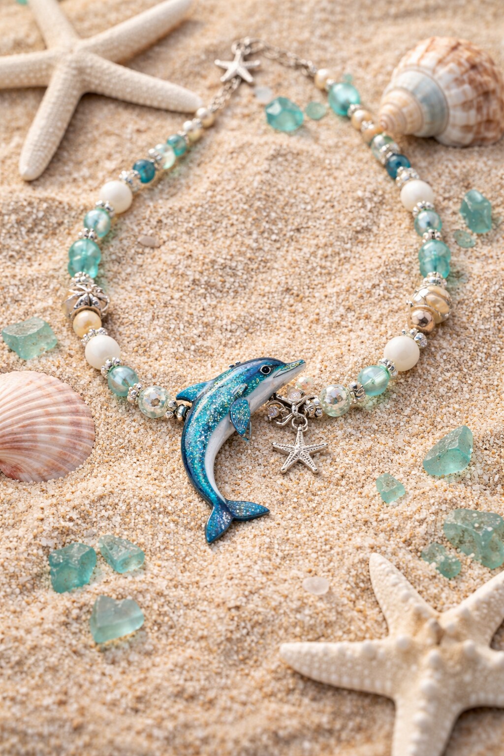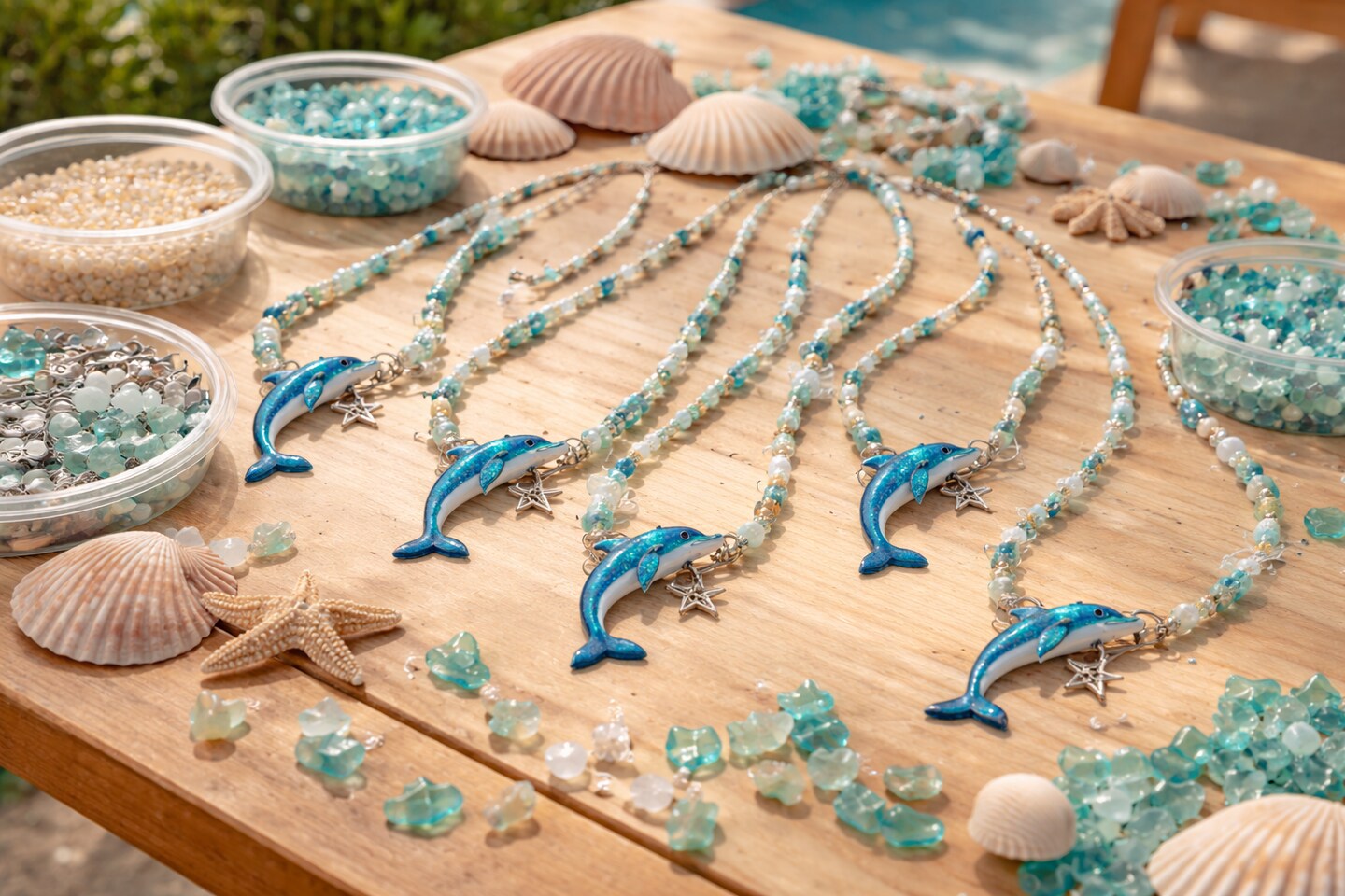 Dolphin Fish Sand Necklace – Ocean Theme Beaded Necklace Craft Kit, 12 Pack
