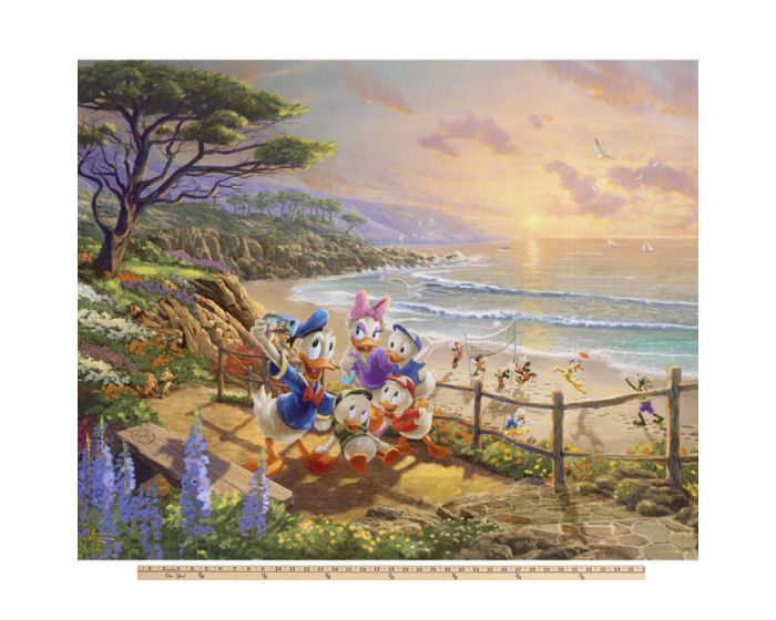 Donald Duck Family Beach Disney by Thomas Kinkade licensed by David Textiles Digital Cotton Print Fabric Panel | 100% Cotton | Sold By the Panel