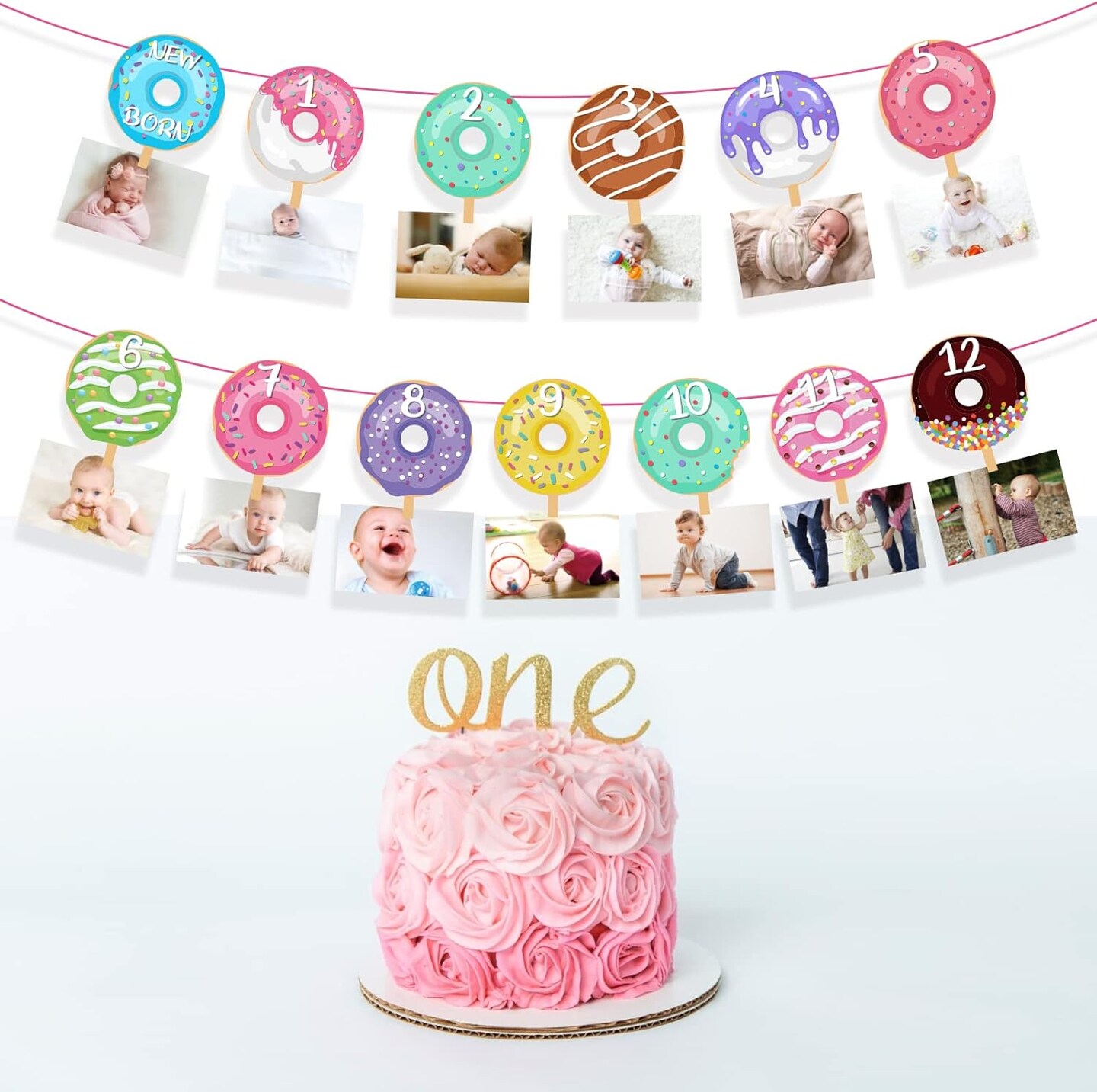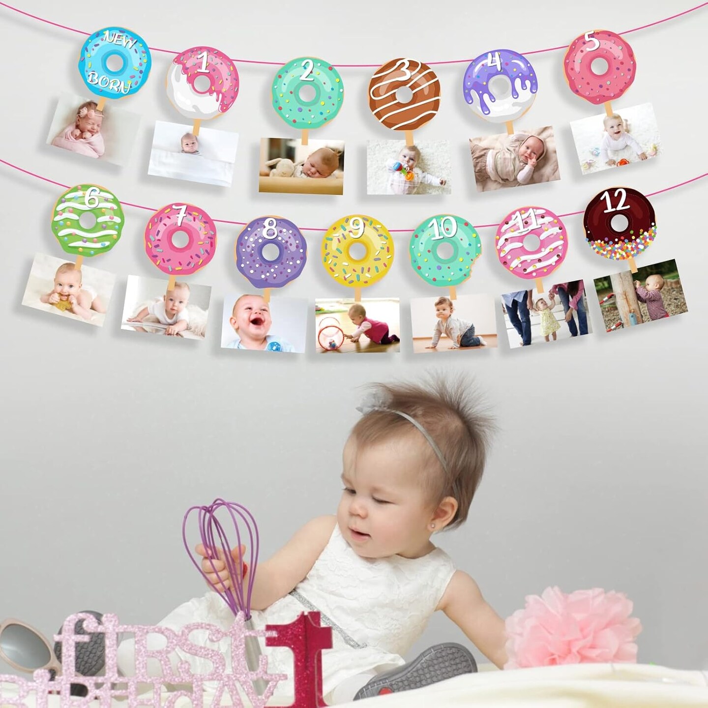 Donut First Birthday Banner, Doughnut Photo Banner for Girl, Donut Grow Up 1st Picture Banner Party Decoration