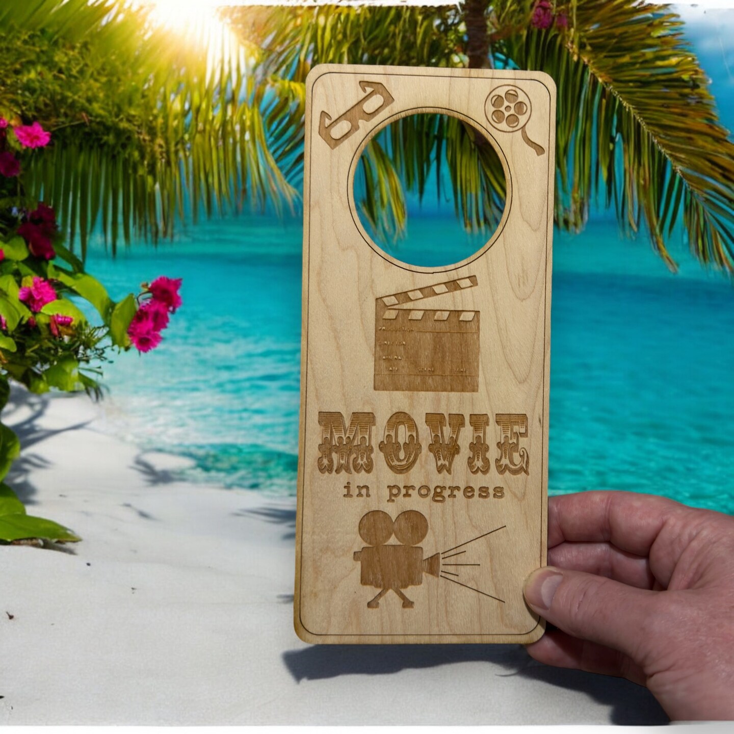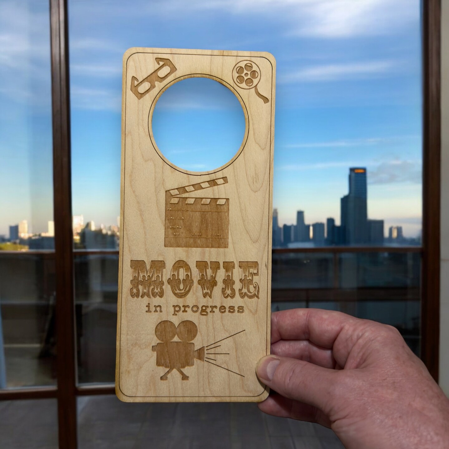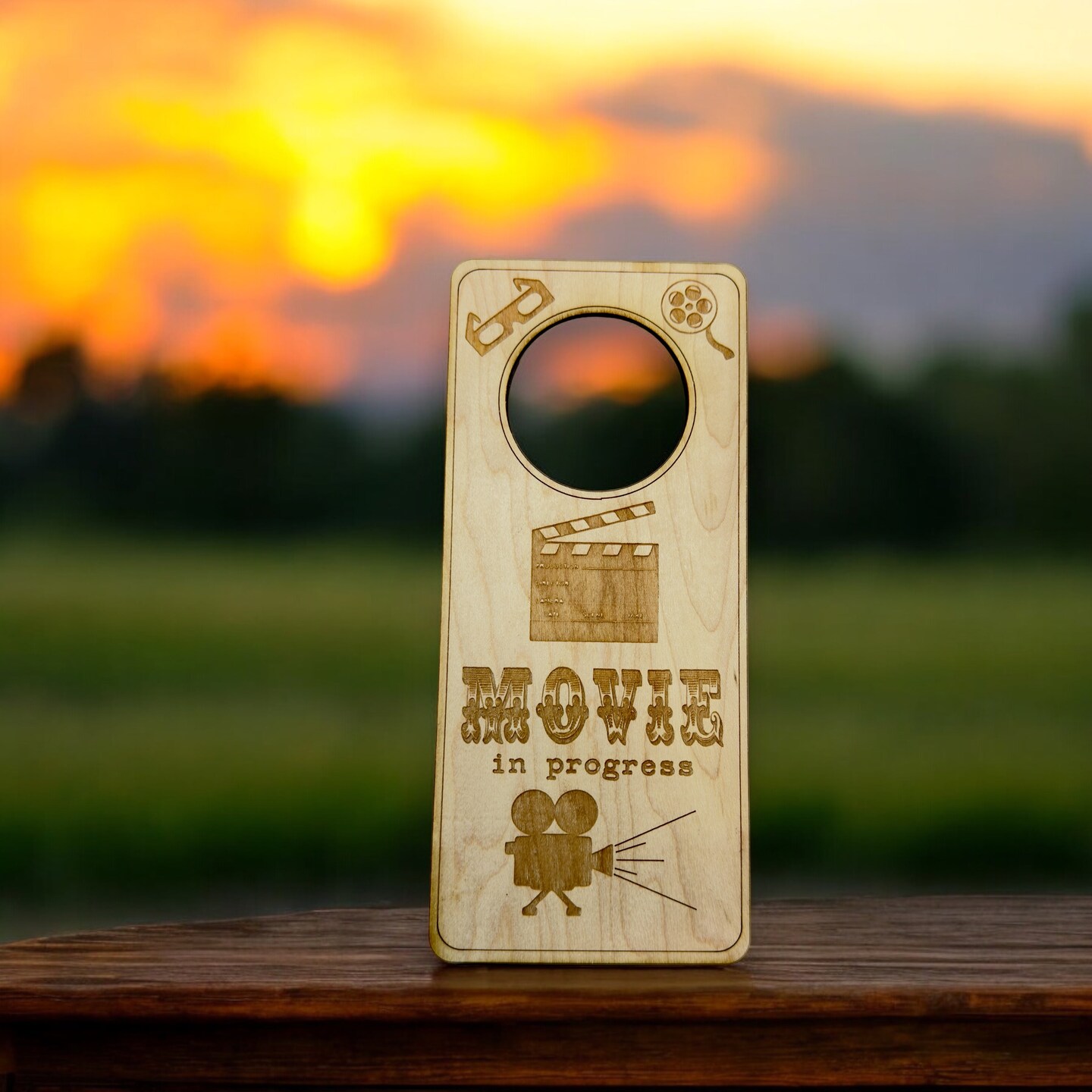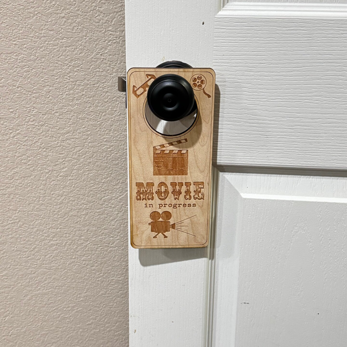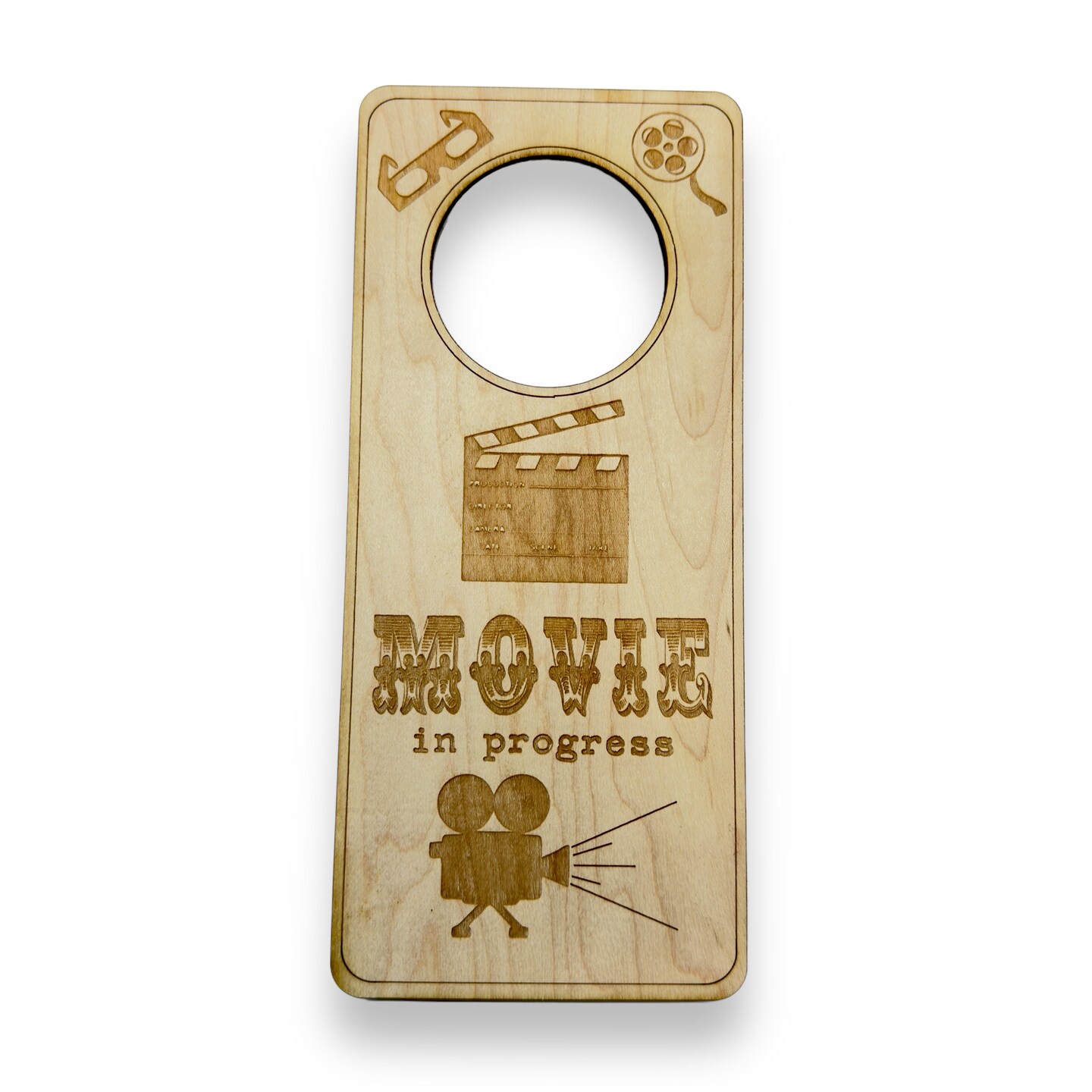 Door Hanger - Movie in Progress 9x4in Raw Wood