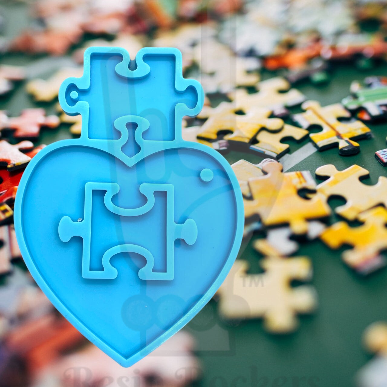 Double Puzzle Piece Heart Keychain Silicone Mold for Epoxy Resin Art