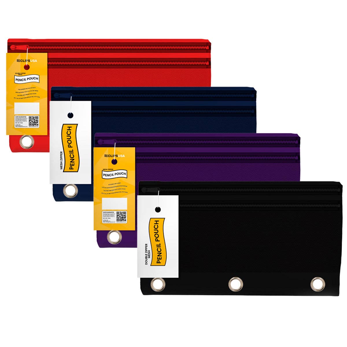 Double Zipper Pencil Pouch with Mesh Window – 48 Ct
