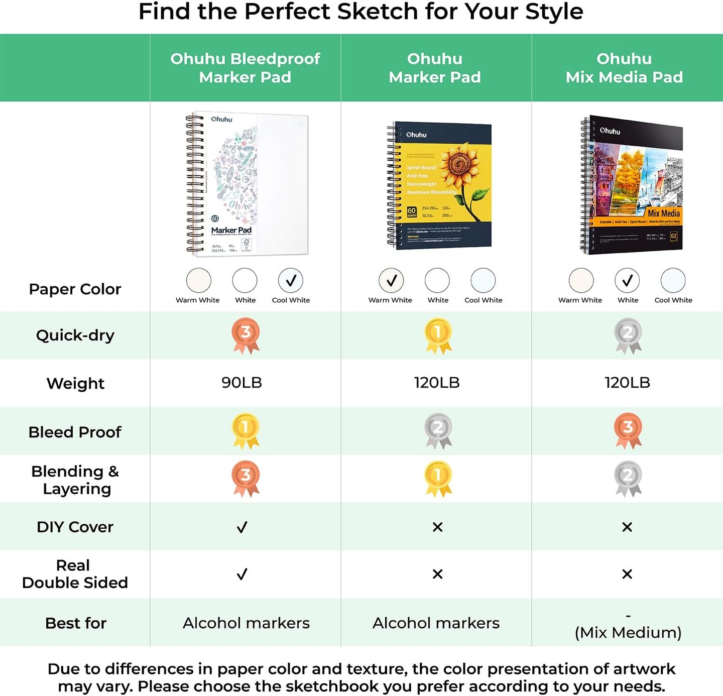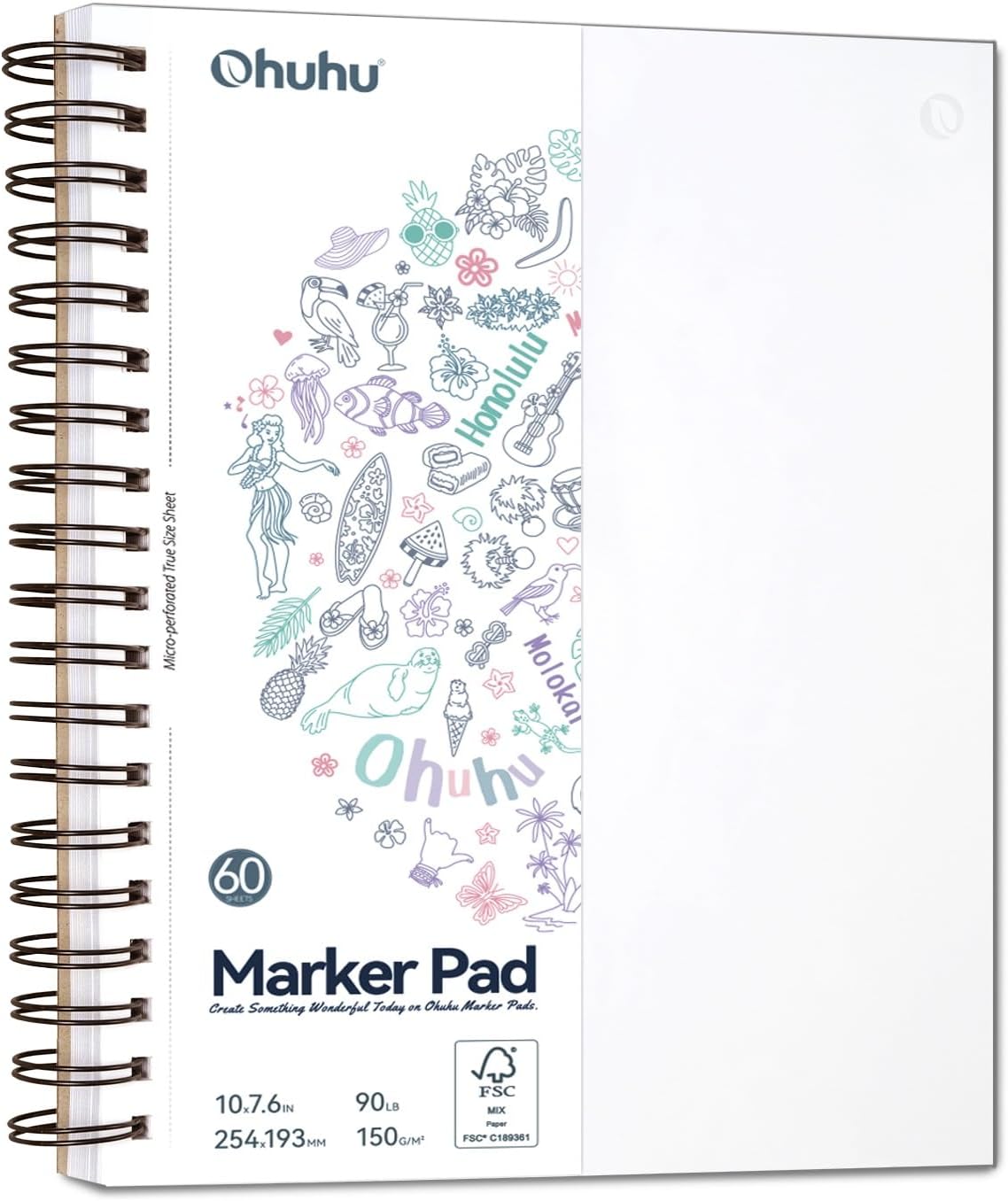 Double-Sided Marker Pad Sketchbook – 7"x10", 60 Sheets/120 Pages, 90 lb/150 gsm Smooth Bleedproof Paper, Spiral Bound Art Sketchbook for Alcohol Markers, Drawing, Illustration, and Coloring